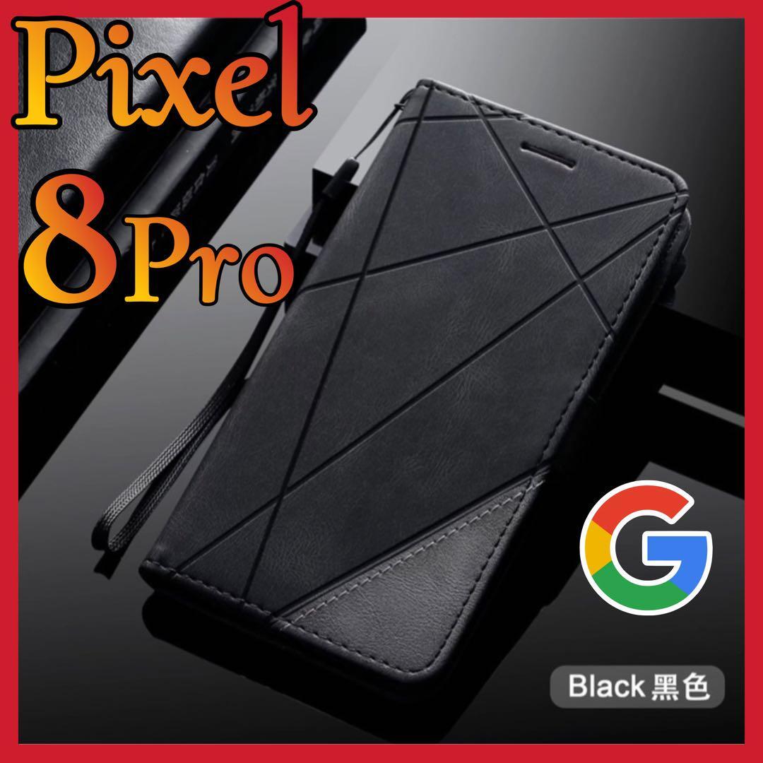 新品未使用 GooglePiXel 8Pro用 手帳型 ブラック 耐衝撃 カード収納 マグネット高級デザイン ストラップ付き スタンド機能開閉 軽量TPU 収納力 横置き機能 スマホケース 防指紋 レンズ保護 落下防止 全面保護 人気 グーグルピクセル 8プロ