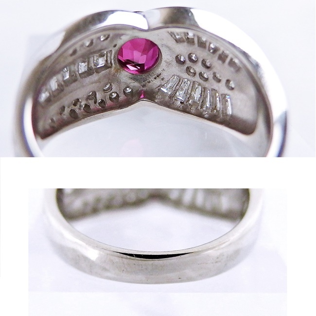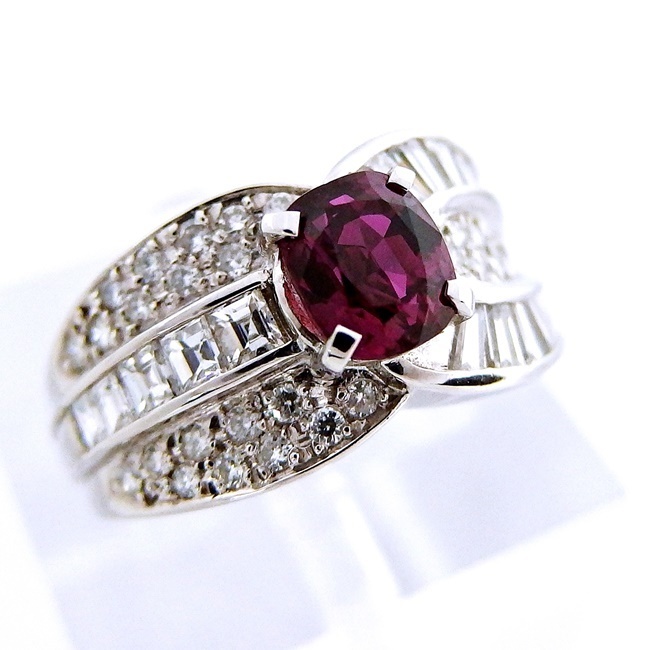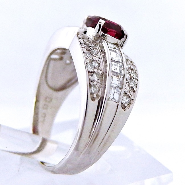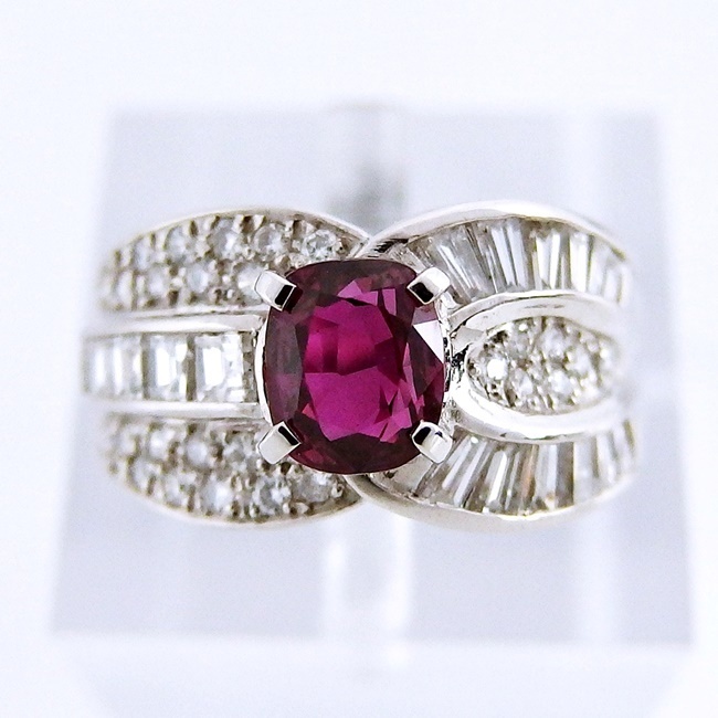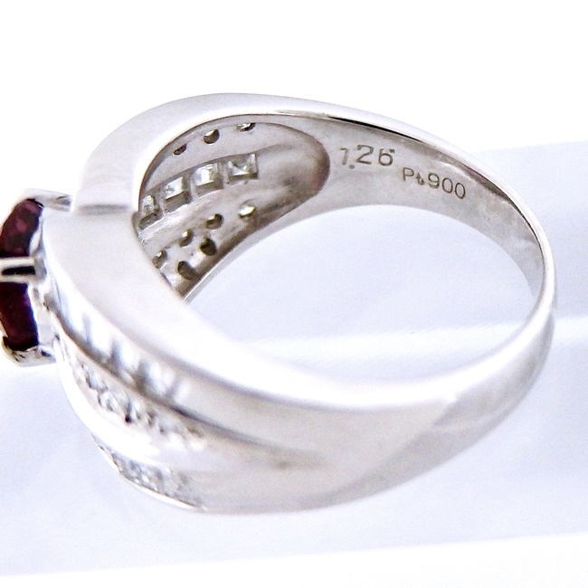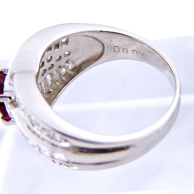 * Pt900 * ルビー:1.26ct 約6.1mmx5.1mm * ダイヤ:0.97ct * モチーフの大きさ(約):縦10mmx横17.9mmx厚5.9mm * サイズ:11.5号 * 鑑別書付 * 重さ:9.0g * ランクA ※写真に撮り切れていないキズのある場合がございます。 ※詳細等気になることがありましたらお気軽にお問い合わせください。 (RR ∞) s00604