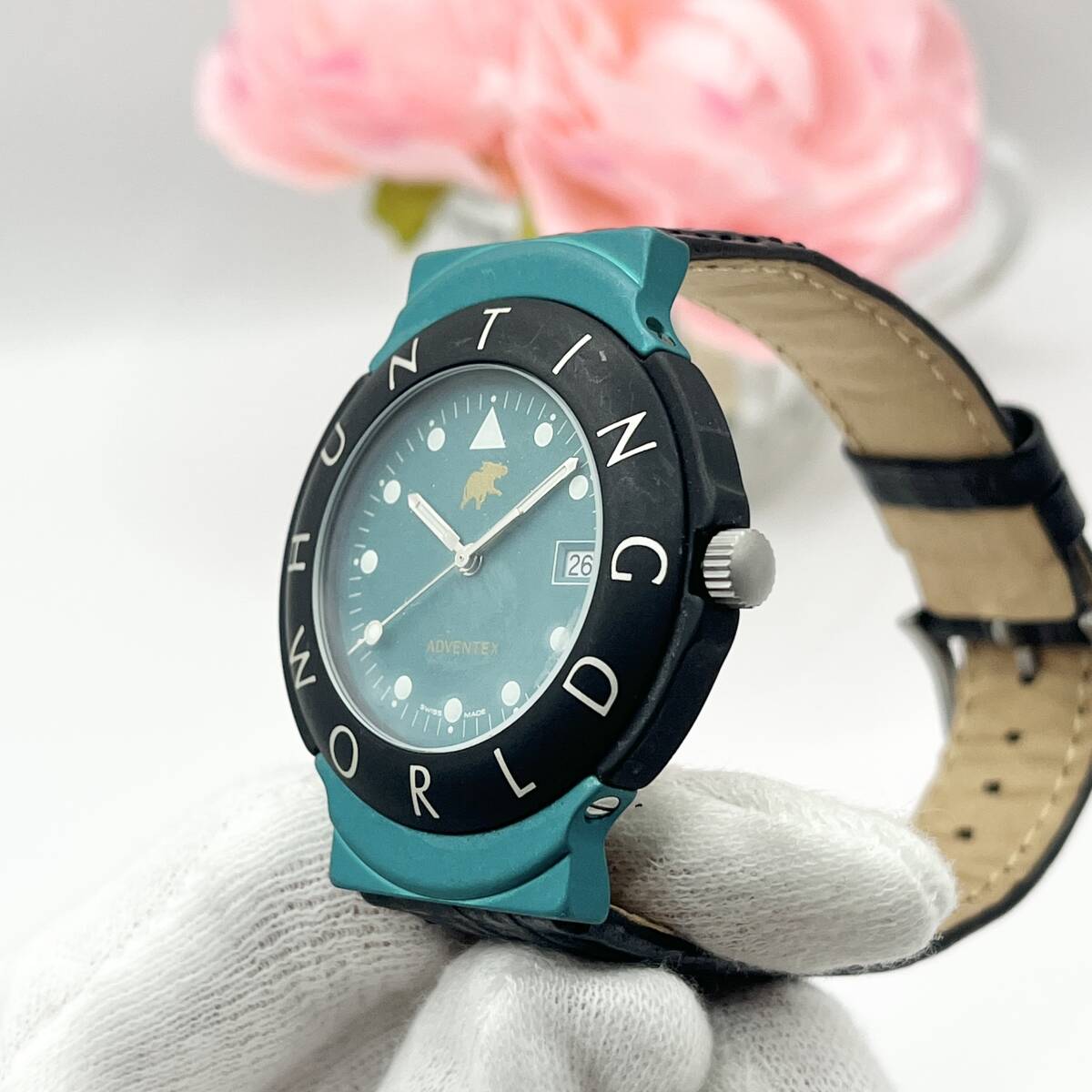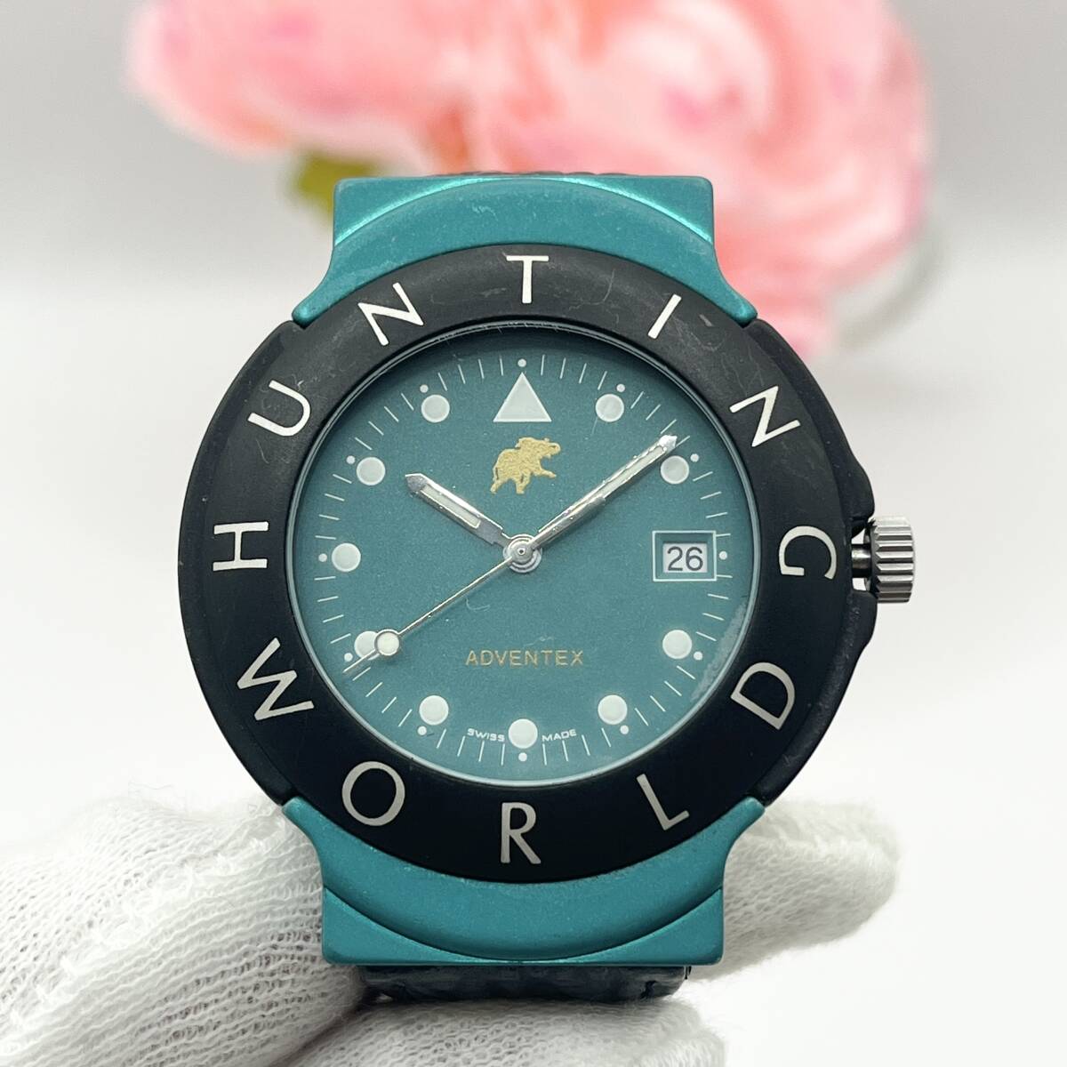 《稼働品》HUNTING WORLD★ハンティングワールド★ADVENTEX★アドベンテックス★クォーツ 腕時計★デイデイト★カレンダー★メンズ★アルミニウムケースの紹介です!