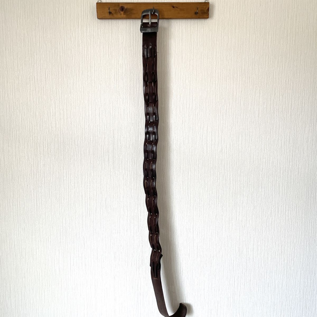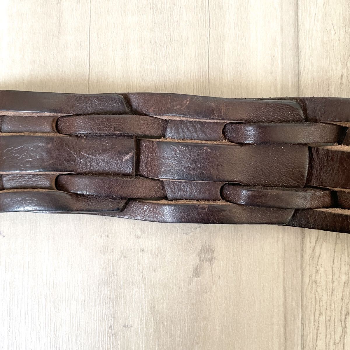 編み込みデザインのベルトで、ややごつめの存在感のあるベルトです。