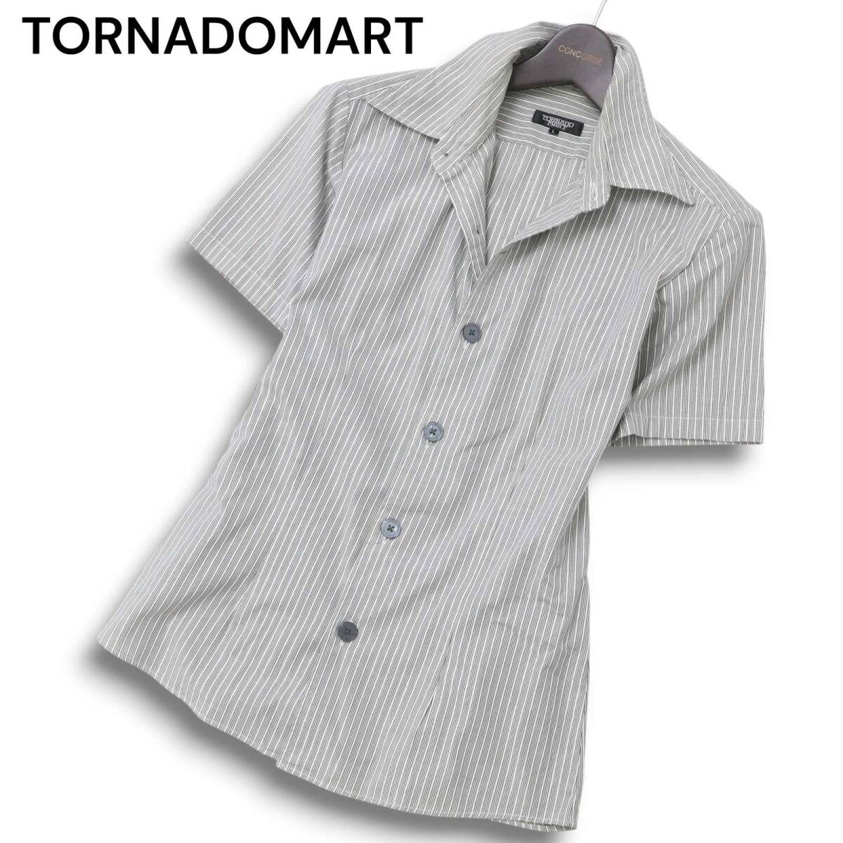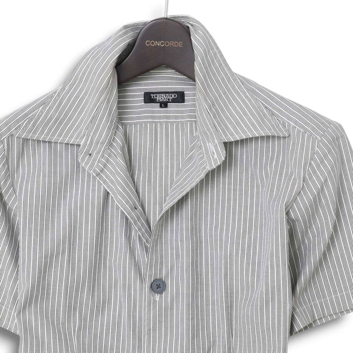 TORNADOMART トルネードマート 春夏★ ラメ ストライプ 半袖 スリム シャツ Sz.L メンズ