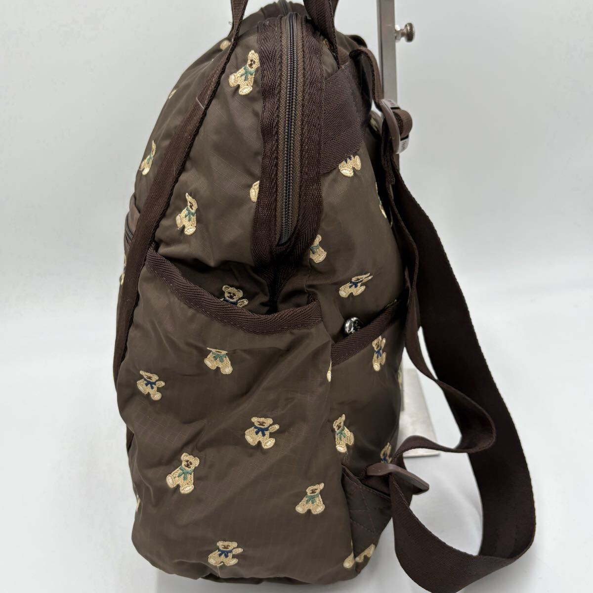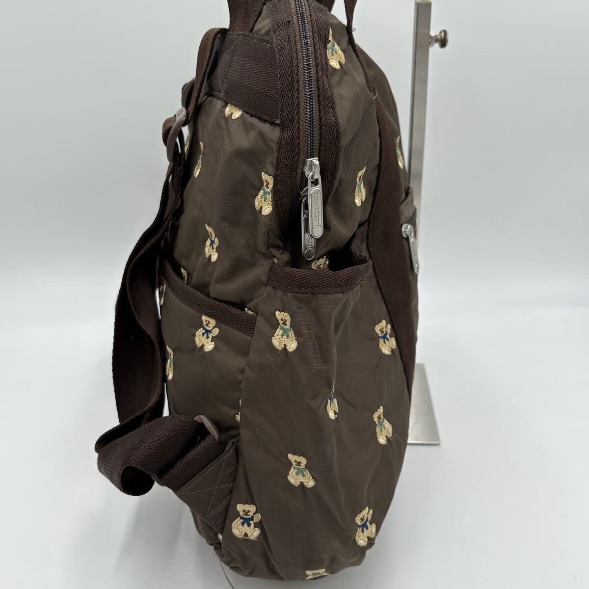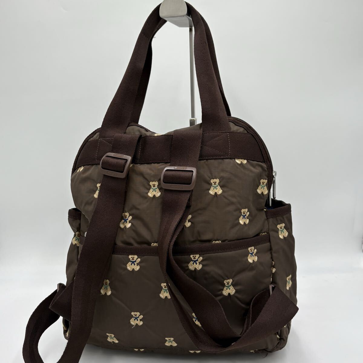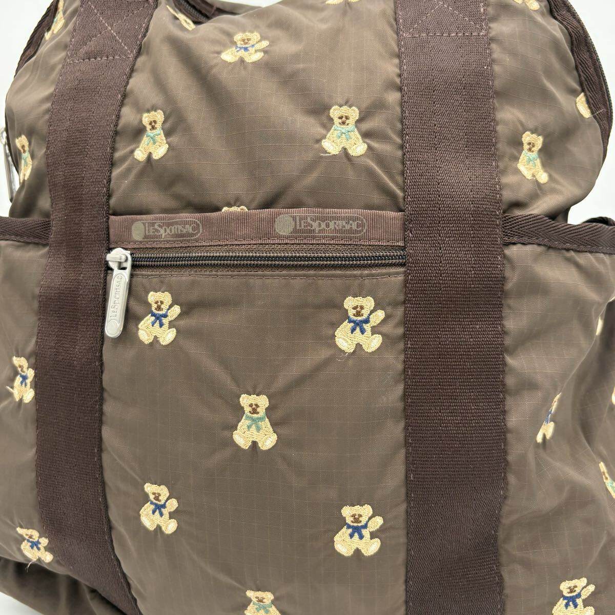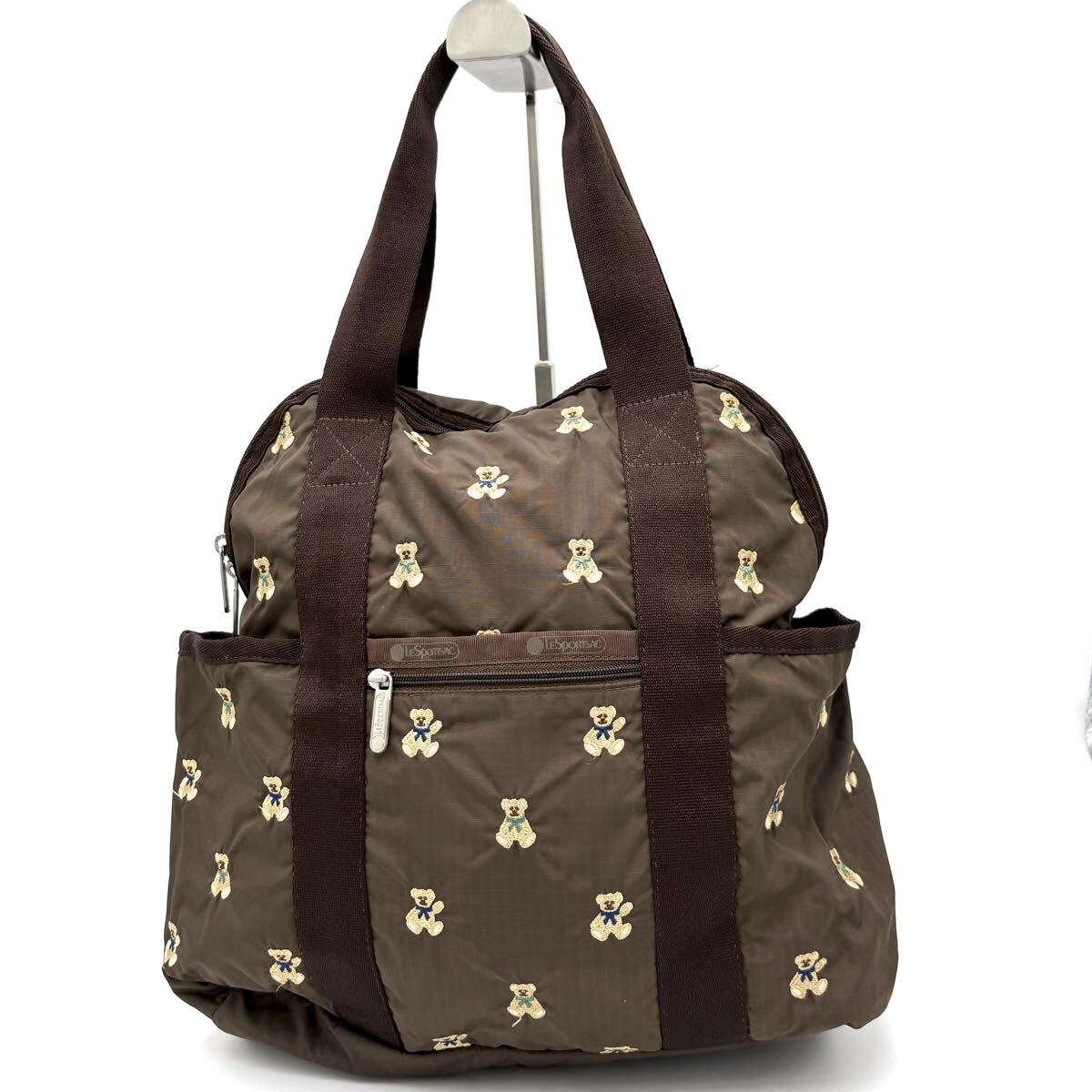 N ■ 大容量収納!! 'クマ刺繍総柄デザイン' LESPORTSAC レスポートサック 2WAY リュックサック 手提げ鞄 ハンドバッグ 婦人鞄 カバン