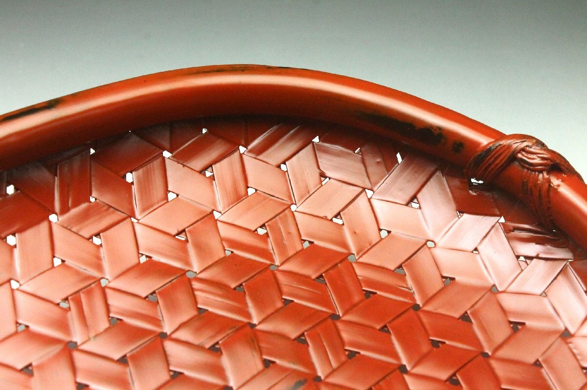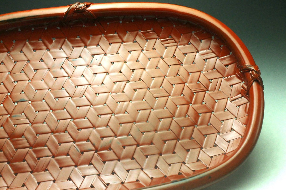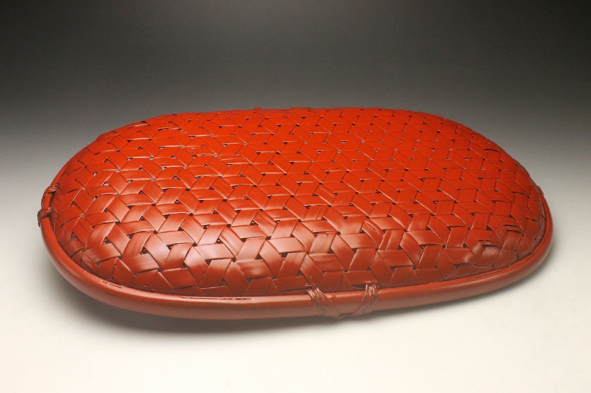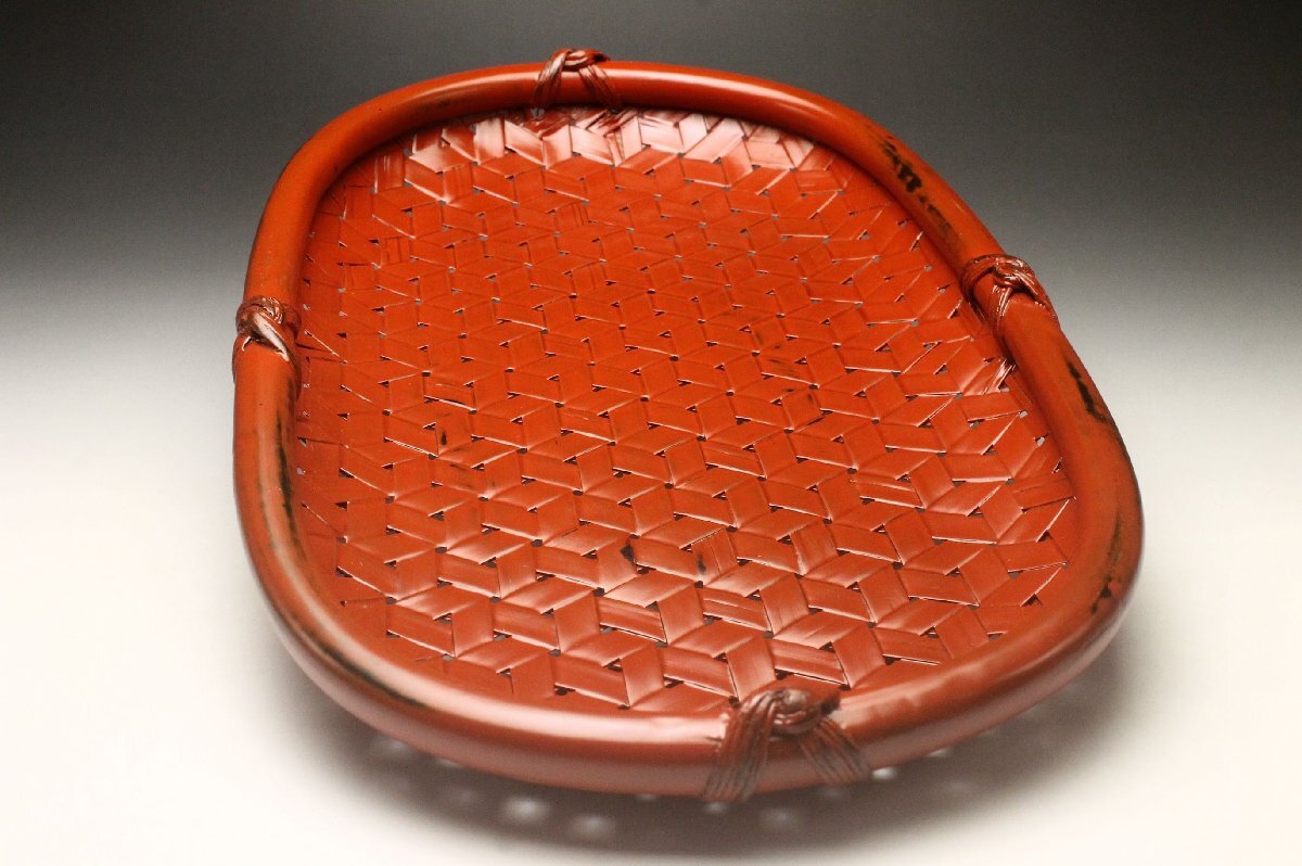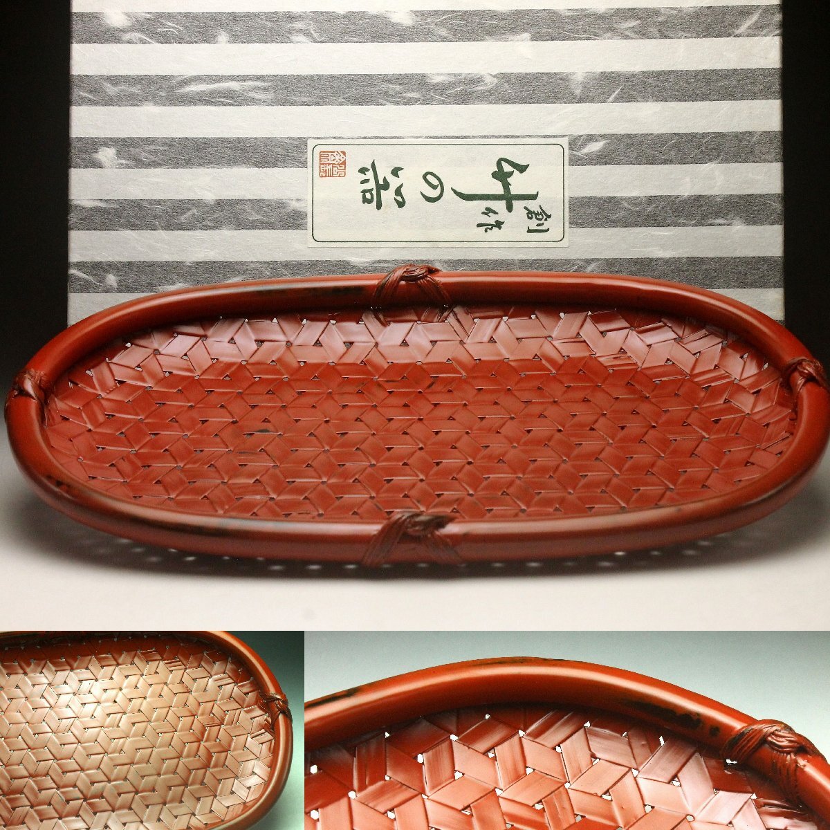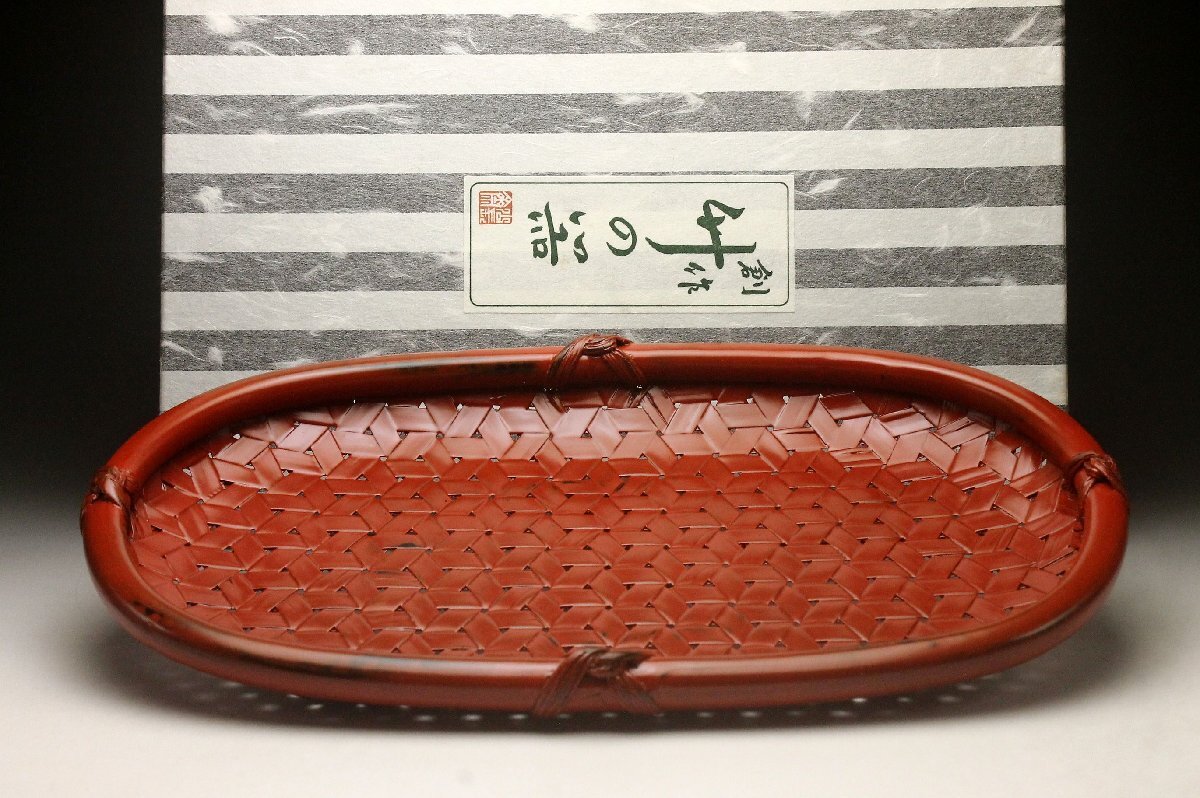 【余韻】 華道具 竹の器 籠胎漆器 楕円盆★化粧箱 無傷美品 茶道具<同梱可>