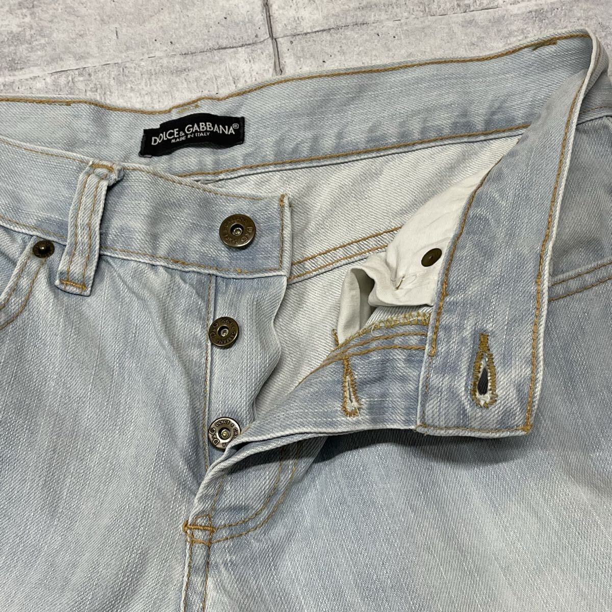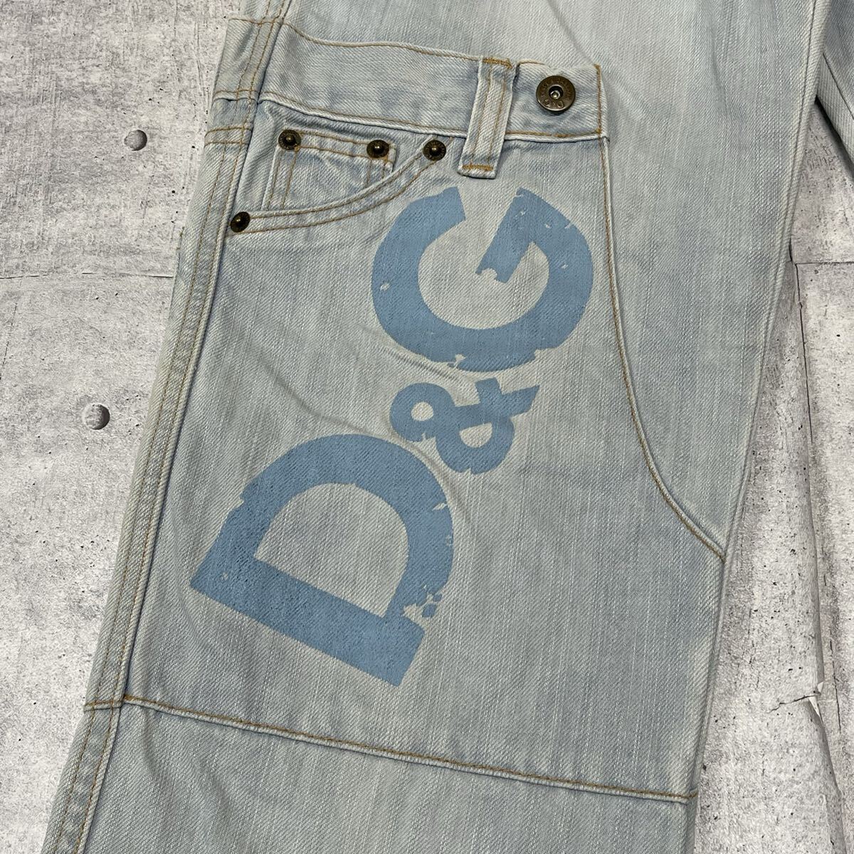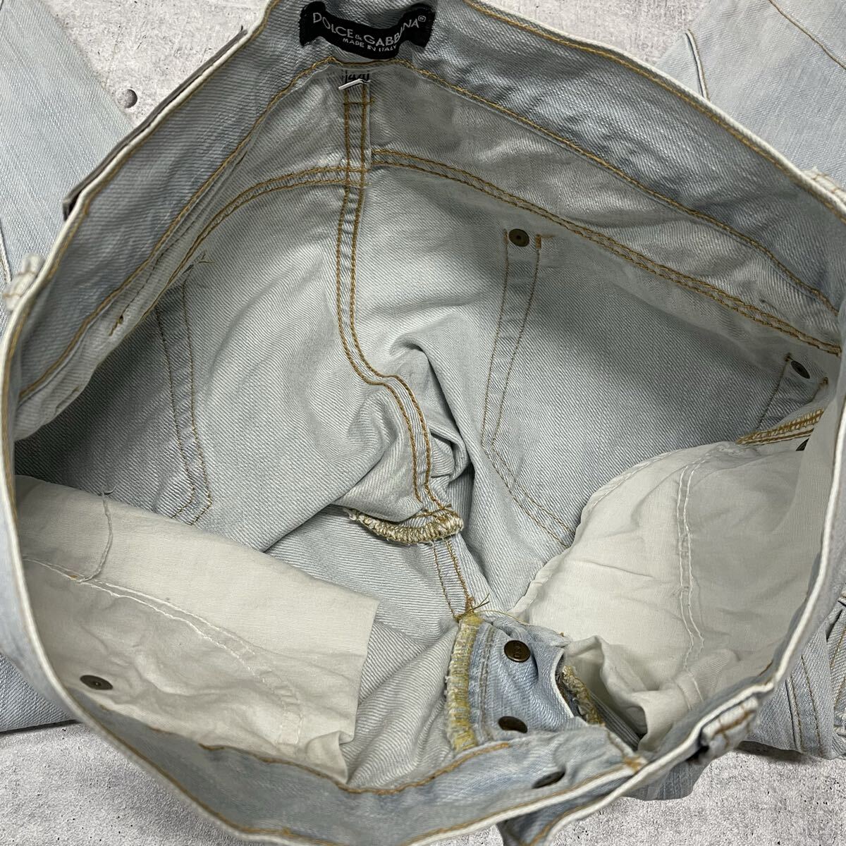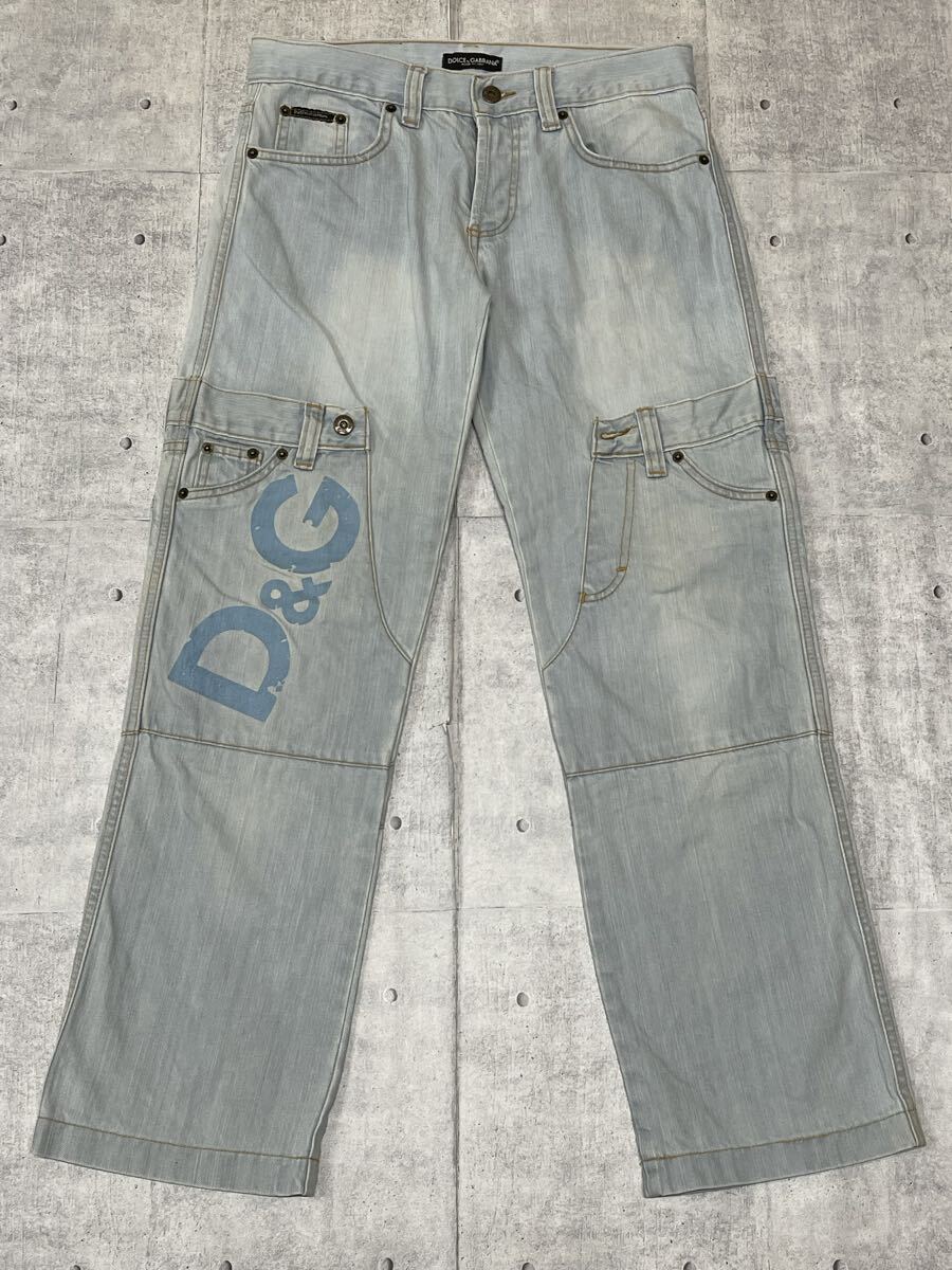 00s DOLCE & GABBANA ジーンズ ドルチェアンドガッバーナ  00年代 ドルガバ イタリア製 再構築 ドッキング y2k パッチワーク 柳11484 ロゴプレート ハイクオリティー アイスブルー フェード D&G デニム MADE IN ITALY