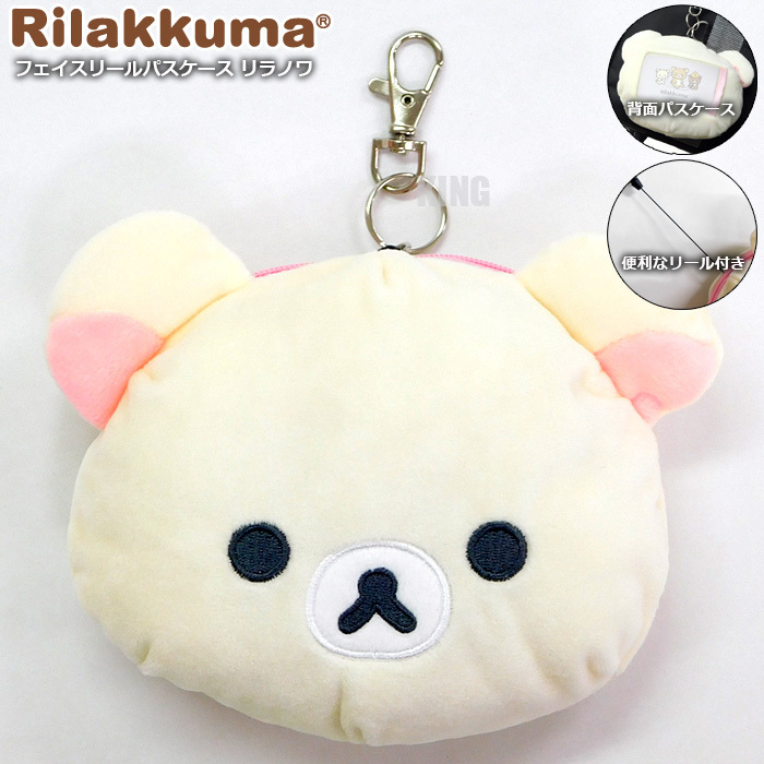 送料無料 コリラックマ ぬいぐるみ フェイス型 リール付き パスケース レディース カードケース 定期入れ コインケース 小銭入れ 通学★