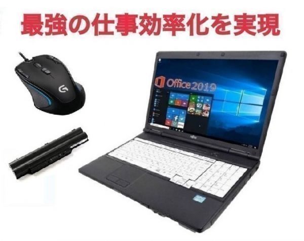 【サポート付き】【バッテリー新品】A561 富士通 Windows10 PC Office SSD:120GB メモリー8GB & ゲーミングマウス ロジクール G300s セット