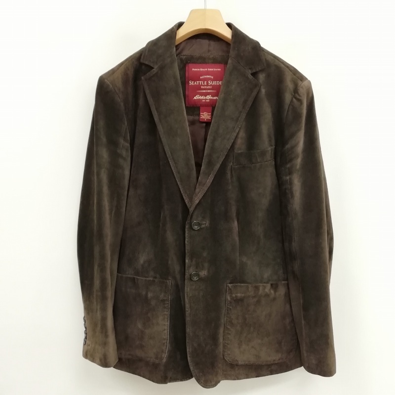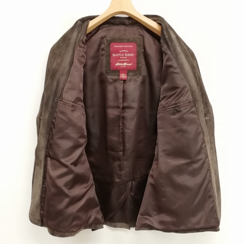 エディーバウアー EDDIE BAUER ピッグ スウェード ジャケット テーラード ブレザー S ダークブラウン系 メンズ