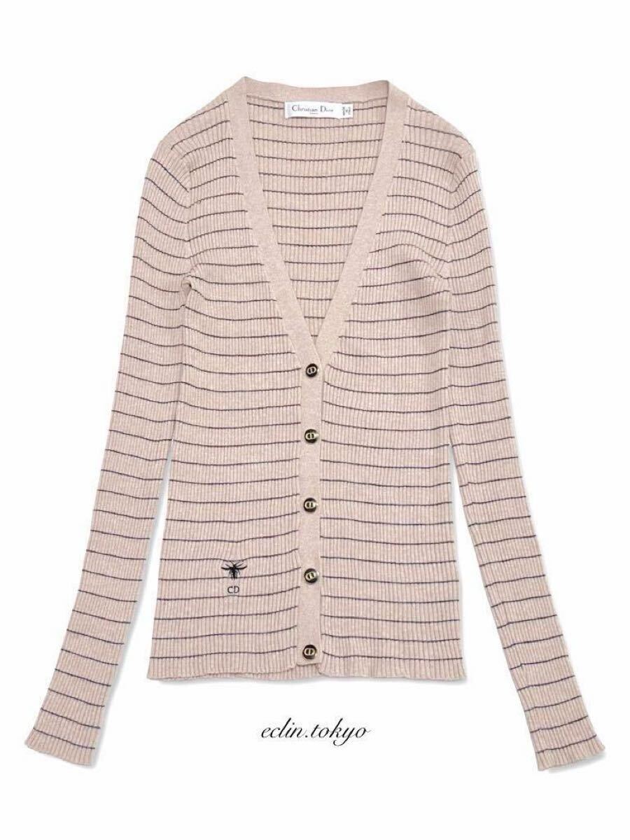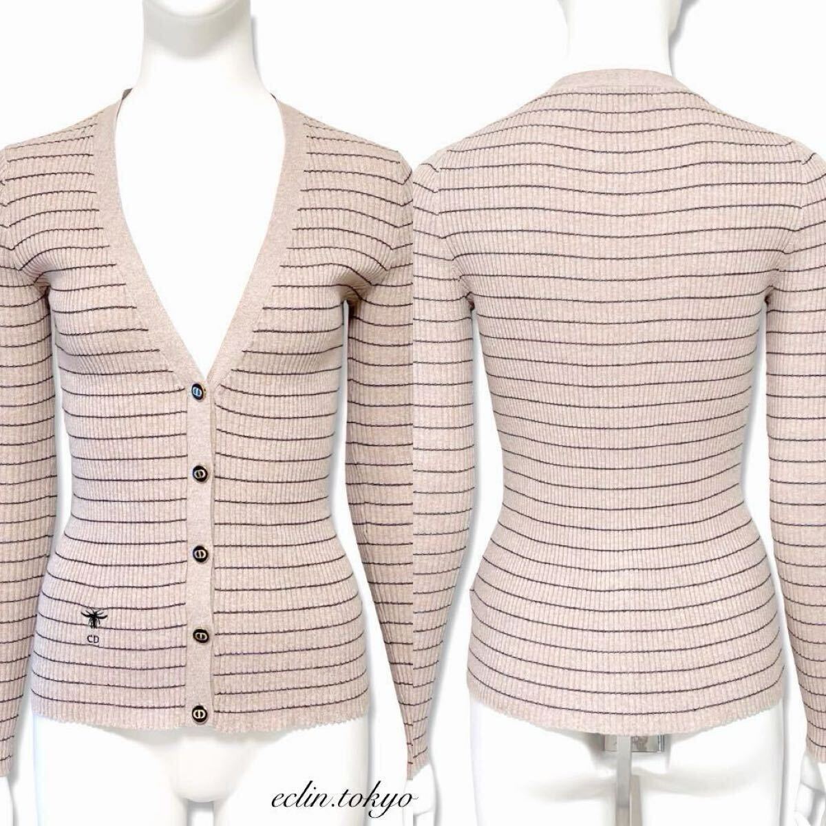 美色ピンクページュ色 ボーダーニットカーディガン