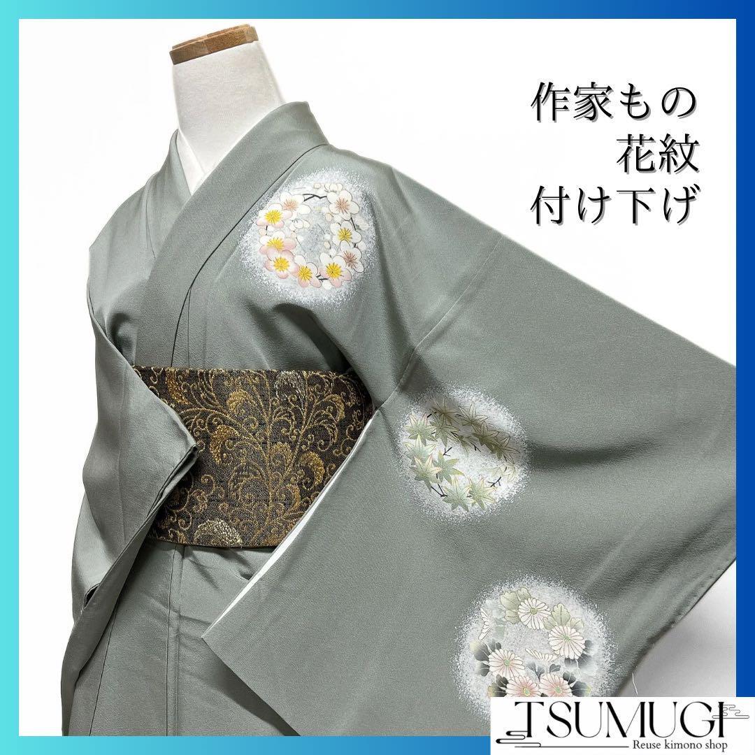 作家もの 付け下げ 金彩 花紋 牡丹 菊 梅 楓 橘 椿 着物 033a d
