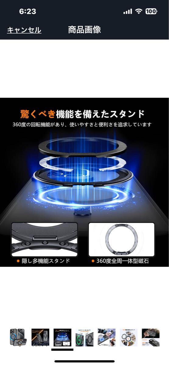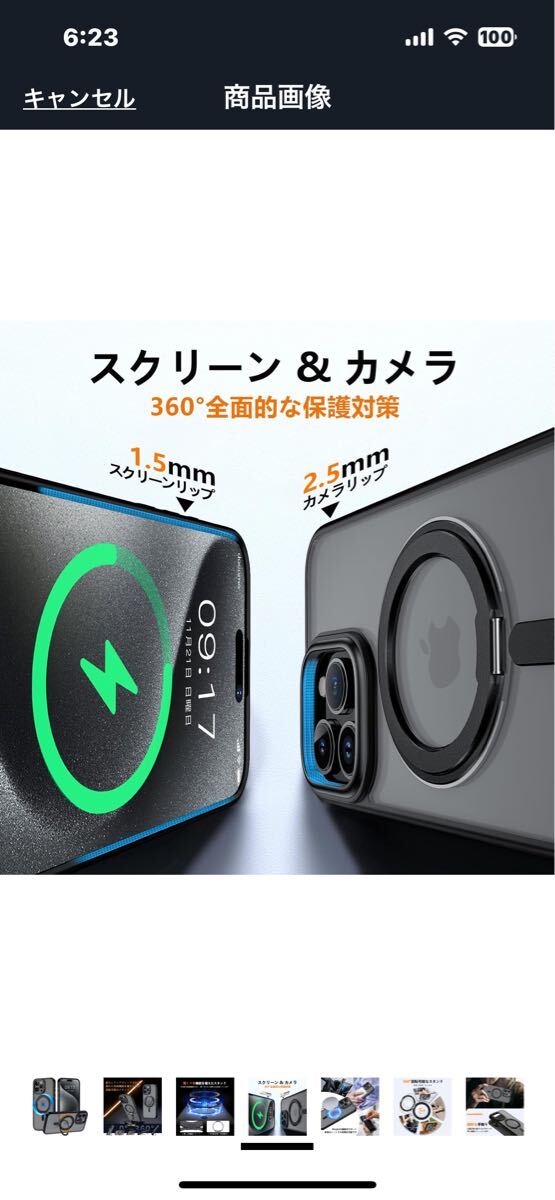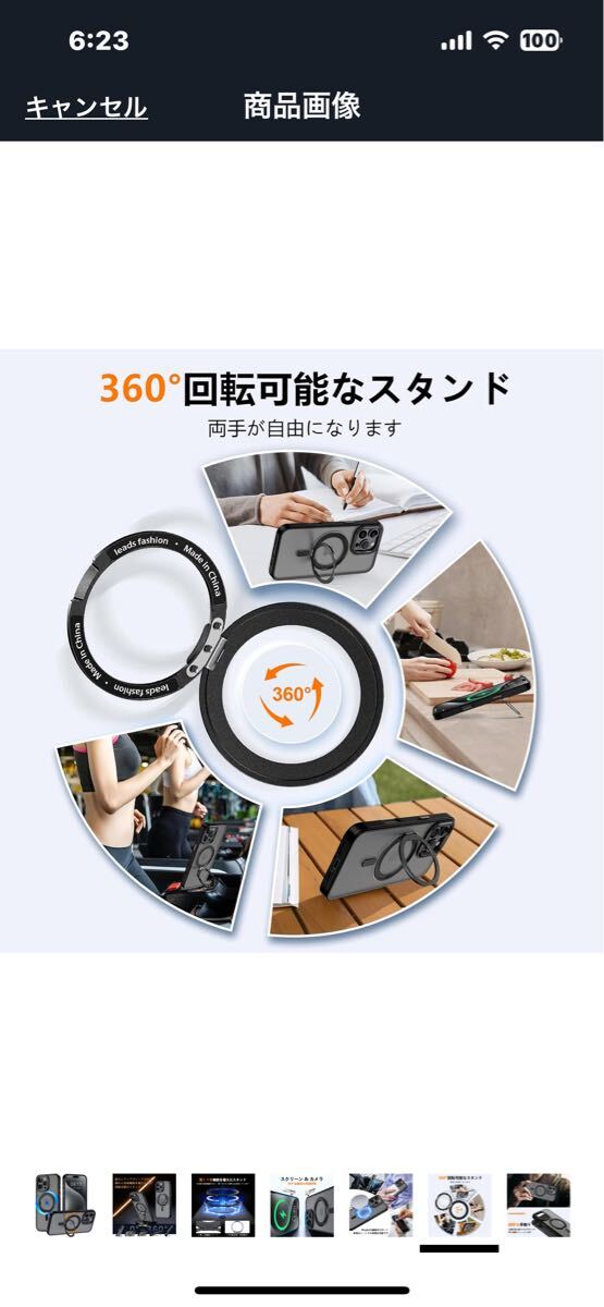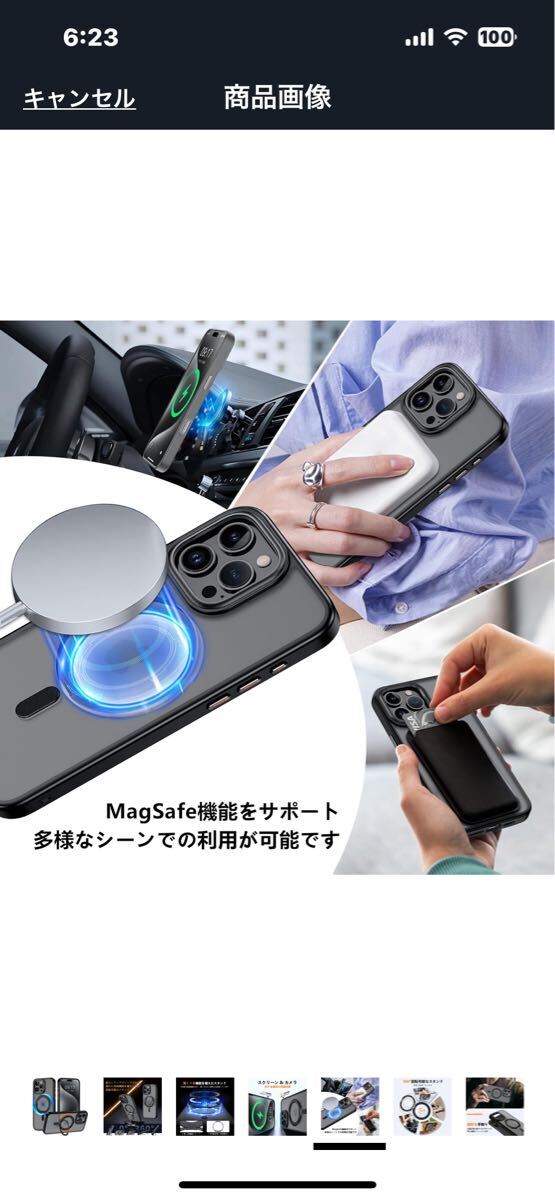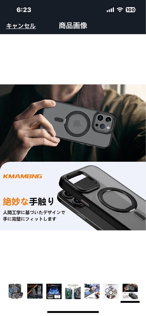 j151 iPhone 16 Pro 用 ケース 縦横両対応リング 【多機能360度回転スタンド】MagSafe 半透明マット スマホケース 米軍規格(ブラック)