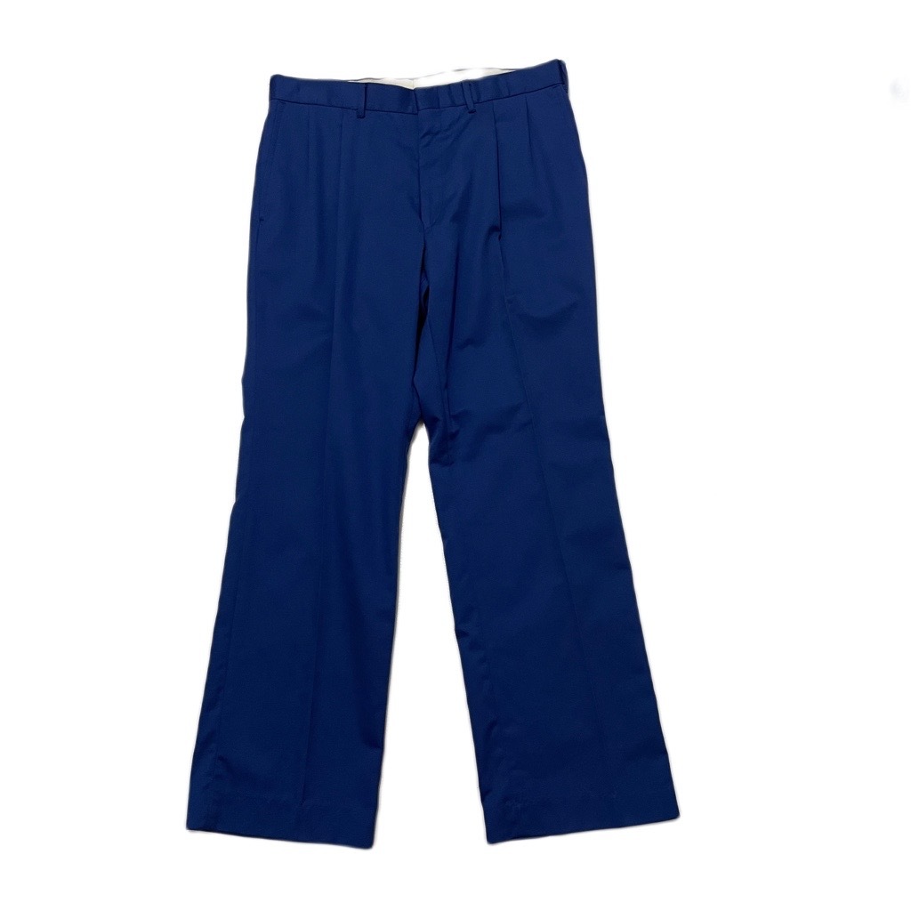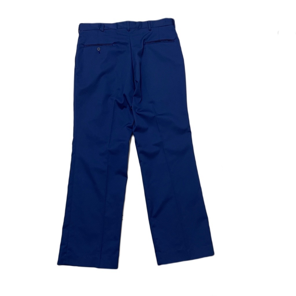 アメリカ古着になります。 80年代のビンテージです。 Dickiesのようなチノ生地のスラックスになります。 2タックのストレートシルエット。 タグはありませんが未使用になります。 色はユーロワークのようなブルー、ジッパーはYKKです。 洗濯済みになります。お探しの方におすすめです。 | |||