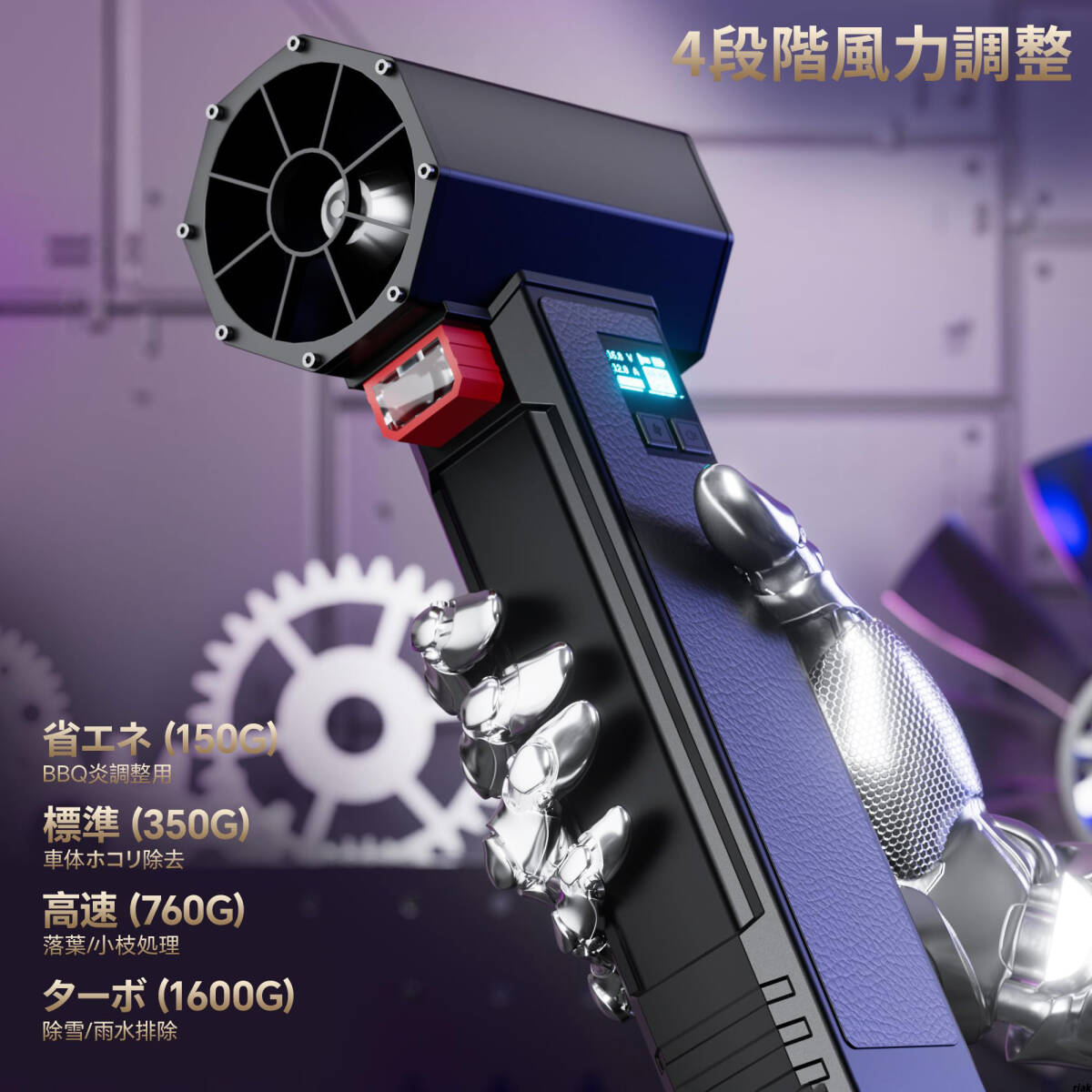 【軽量かつコードレス設計のブロワー】 強力ターボブロワー 多機能送風器 LEDライト搭載 充電式 洗車乾燥 庭掃除