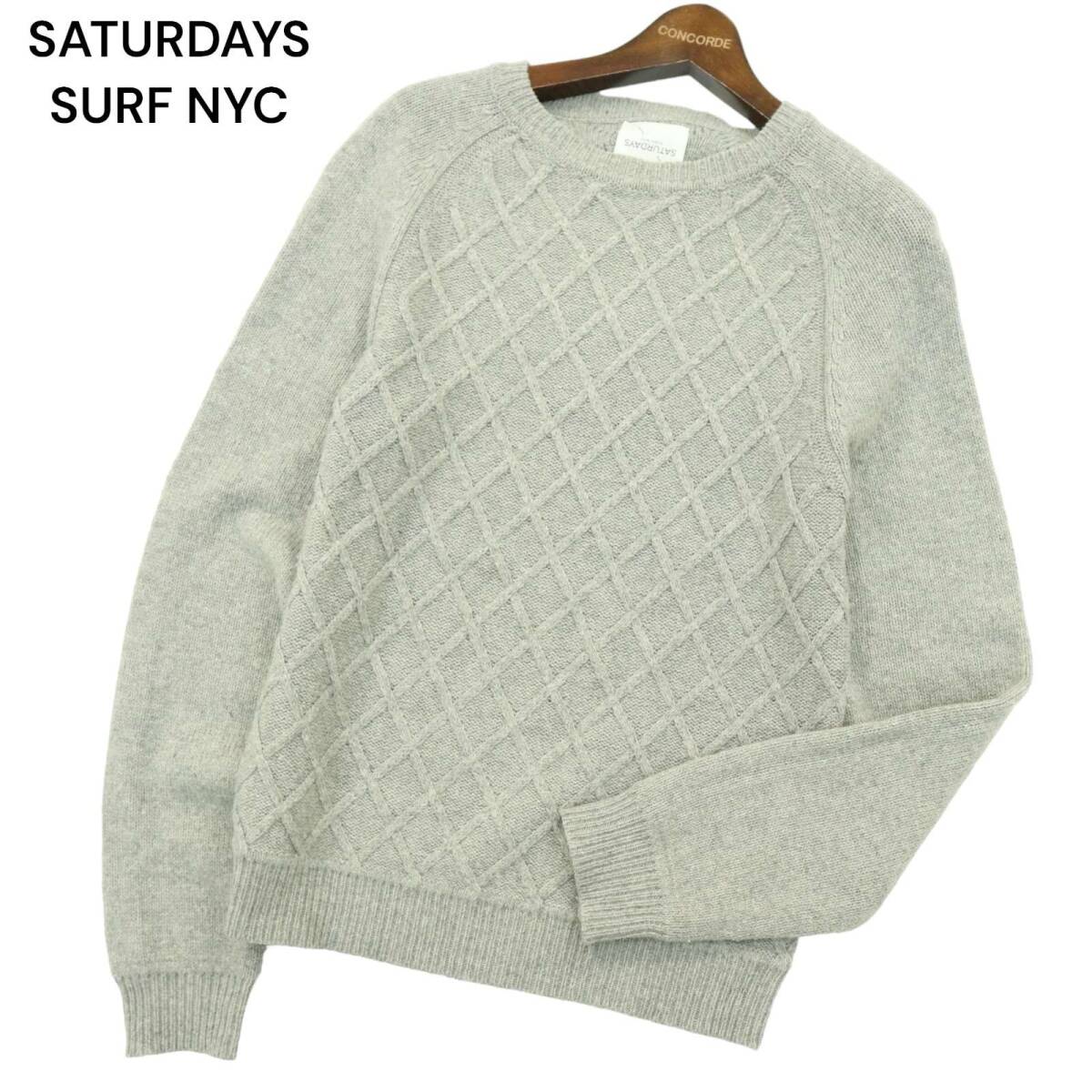 SATURDAYS SURF NYC サタデーズ サーフ ニューヨーク 秋冬 ウール混★ 格子編み ニット セーター Sz.S メンズ グレー