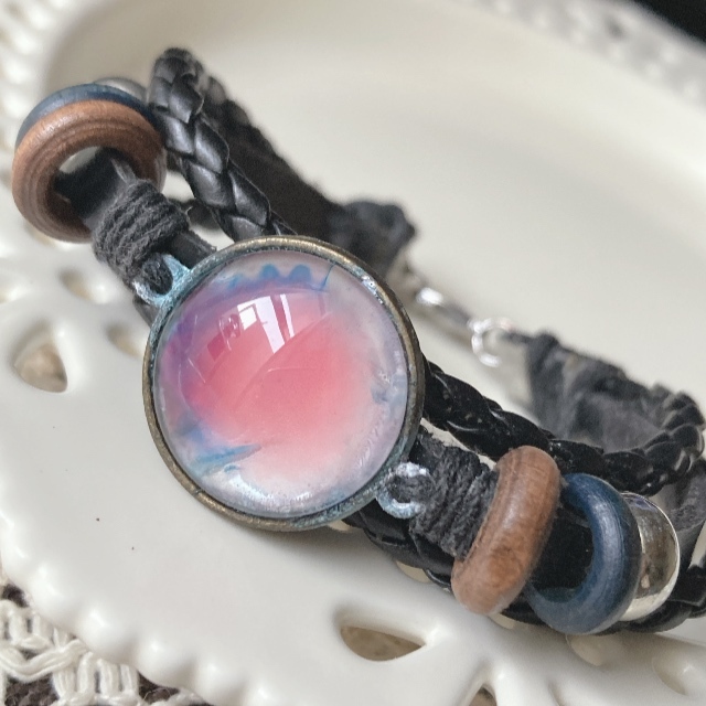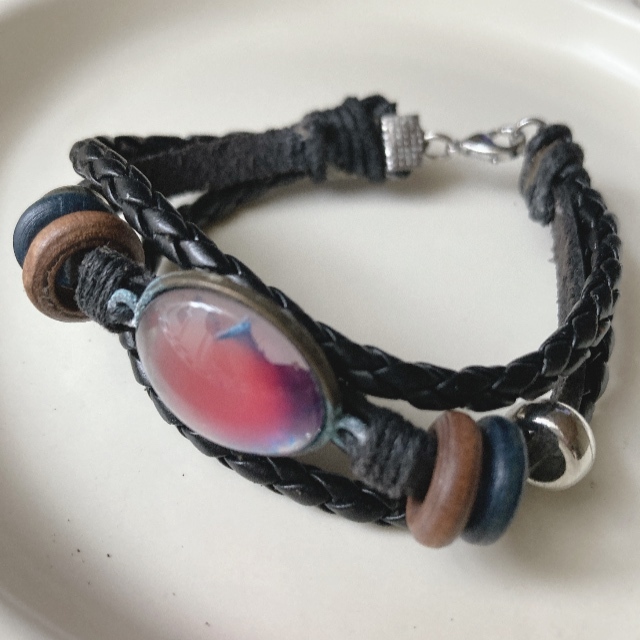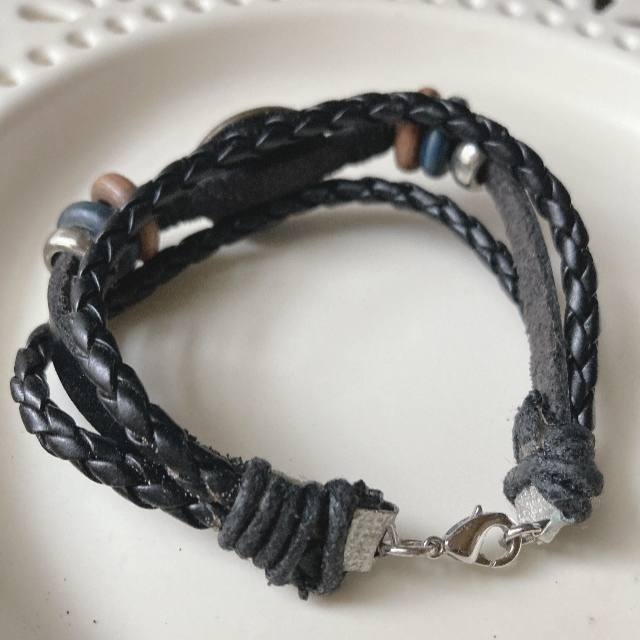 ヴィンテージブレスレット ブラック レザー ユニセックス 黒☆vintage jewelry accessoriesR0698