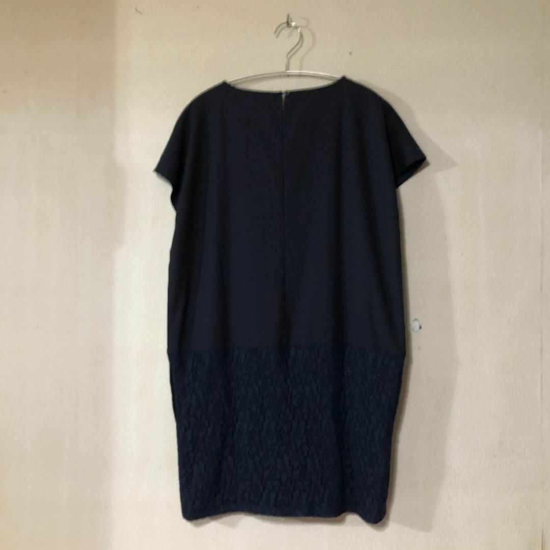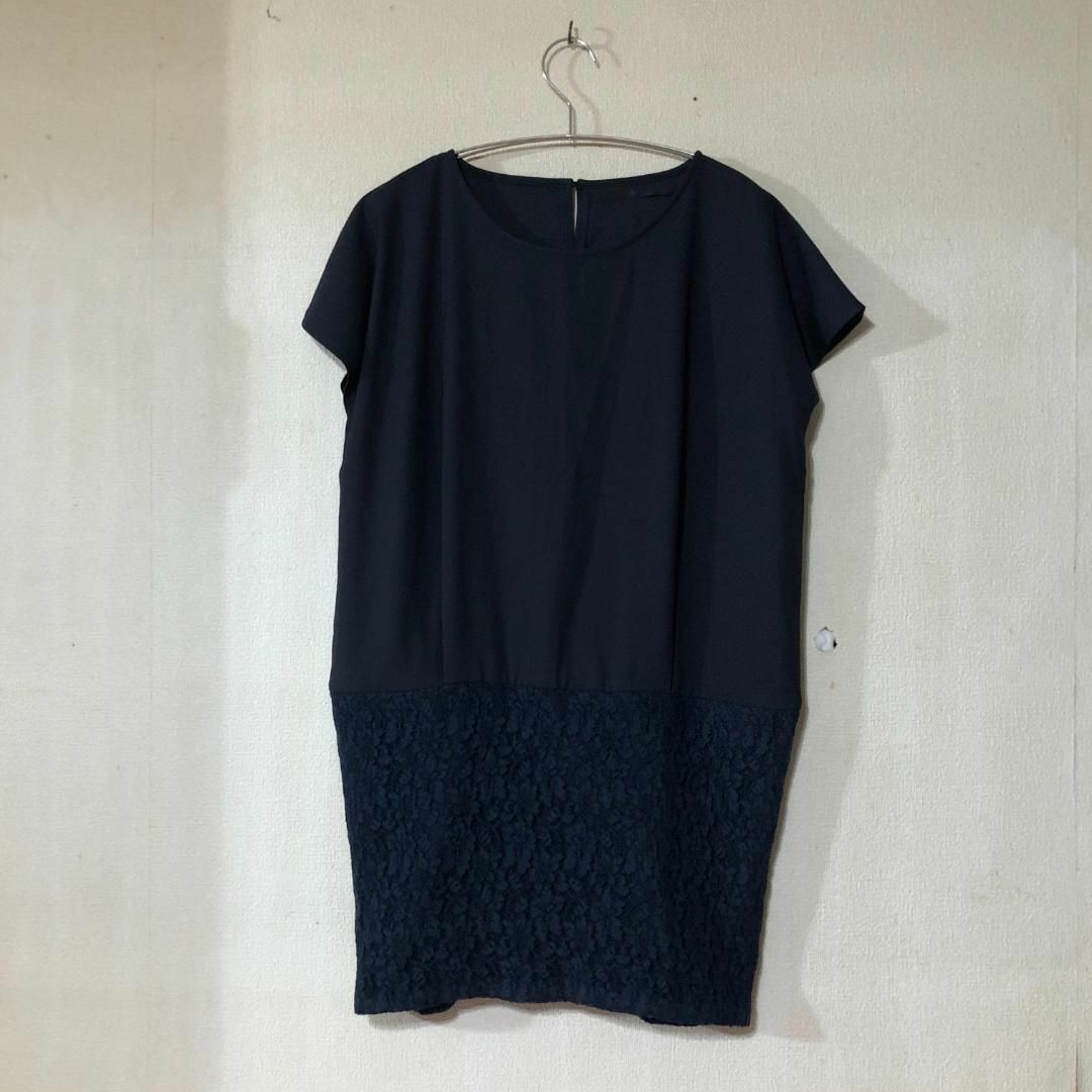 紺色 半袖ワンピース レース 切り替え フリーサイズ B1851