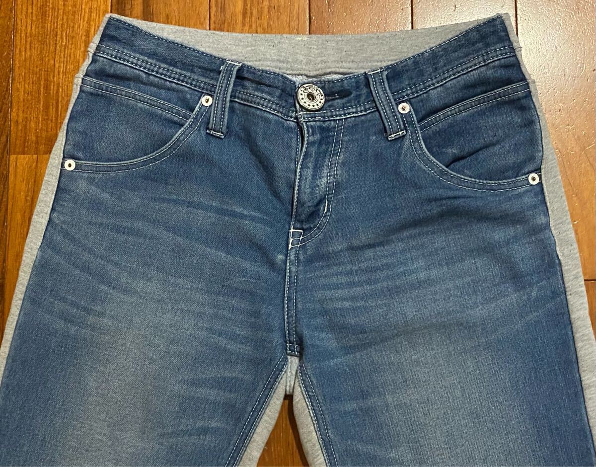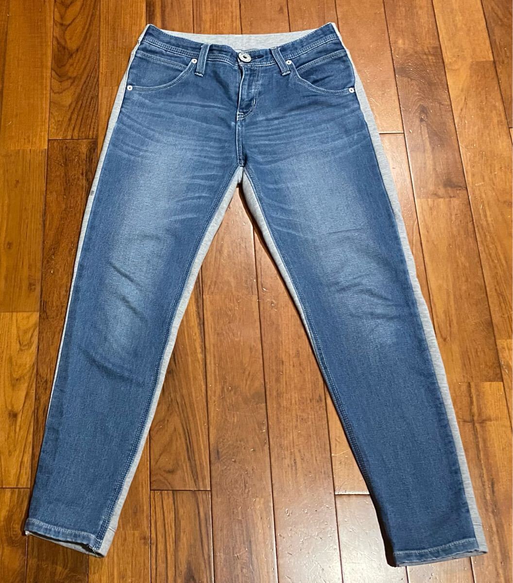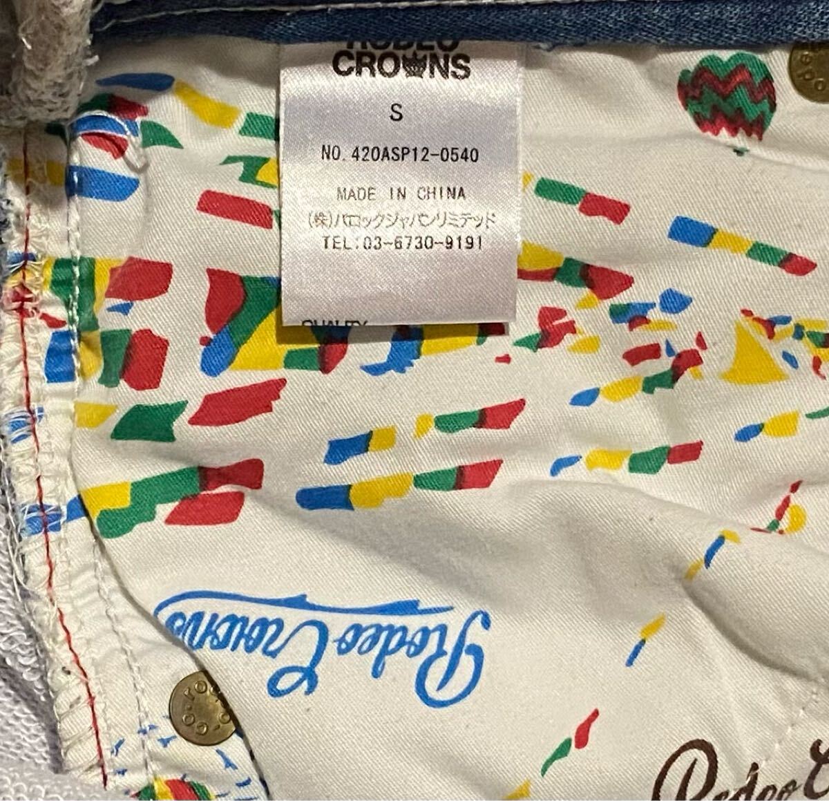 ロデオクラウンズ ワイドボウルのスウェットデニムパンツ、NO.420ASP12-0540です。USEDですが状態は良いです(10段階中8程度)。ジッパーフライです。生地はストレッチ入りでコットン88%、ポリエステル11%、ポリウレタン1%、カットソー部分はコットン52%、ポリエステル48%です。正規品です((株)バロックジャパンリミテッド、中国製)。サイズはSでウエストは重ねずに平置きで約73cm、ヒップ約98cm、股上約25cm、股下約71cm、股下15cmのふともも部分約51cm、裾まわり約29cm、重量約460gです。発送はゆうパケットポストになります。