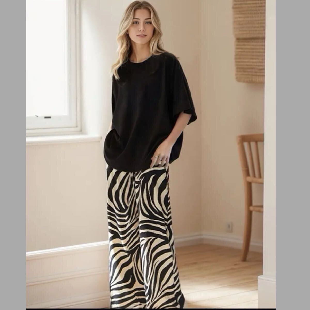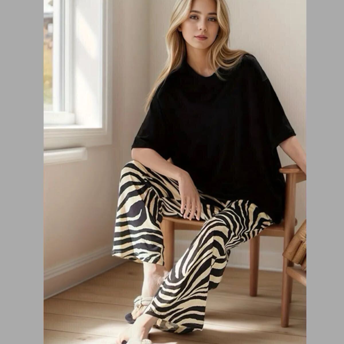 春夏用 レディース パジャマ カジュアル 半袖 ロングパンツ セット ゼブラ プリント 高級 ホームウェア ツーピース セットトレンド セレブ シック シンプル 素敵 上品な ルームウェア セットアップ エレガント