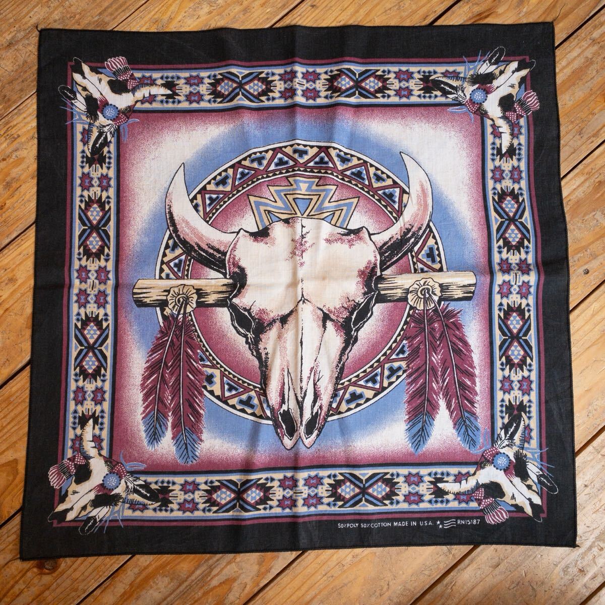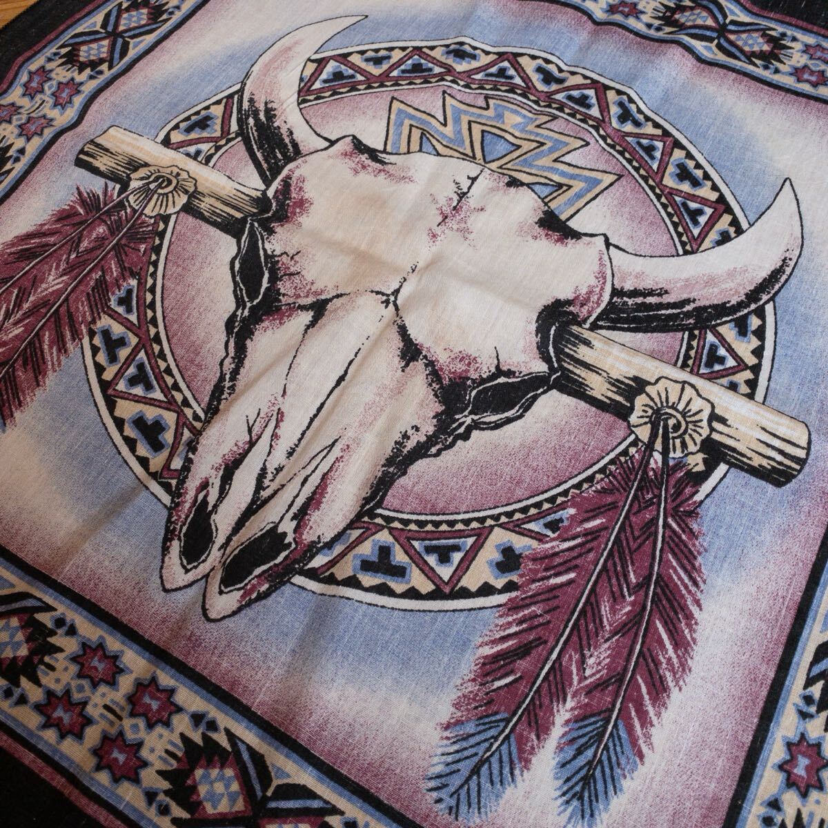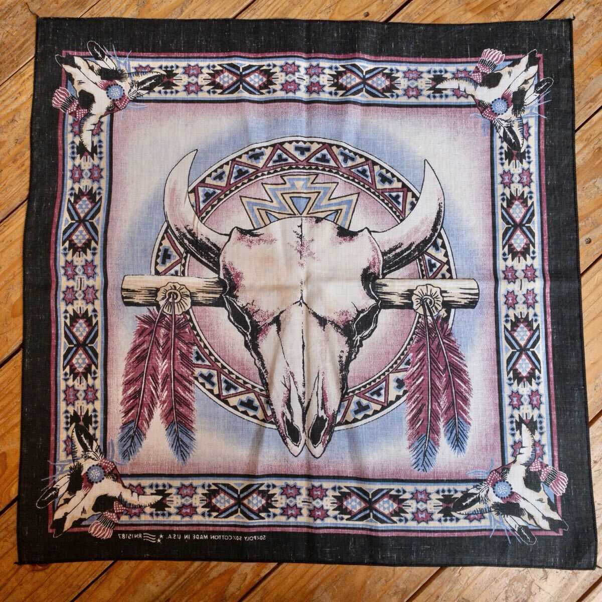 アメリカで購入したセカンドハンド(古着)の、 ネイティブ柄のバンダナです。