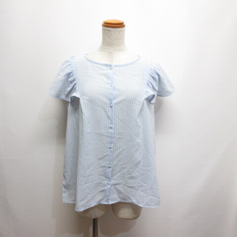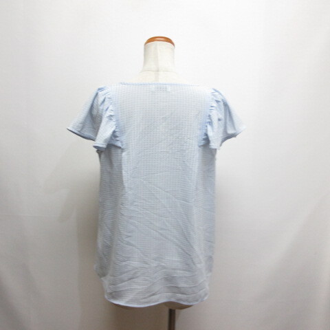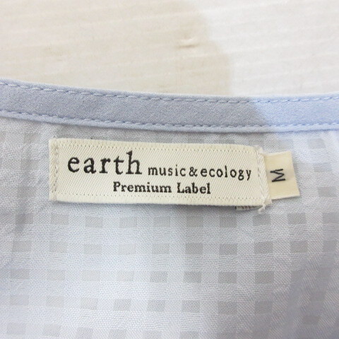 アースミュージック&エコロジー EARTH MUSIC & ECOLOGY 美品 チェック柄 ノースリーブ シアー ブラウス M ブルー レディース