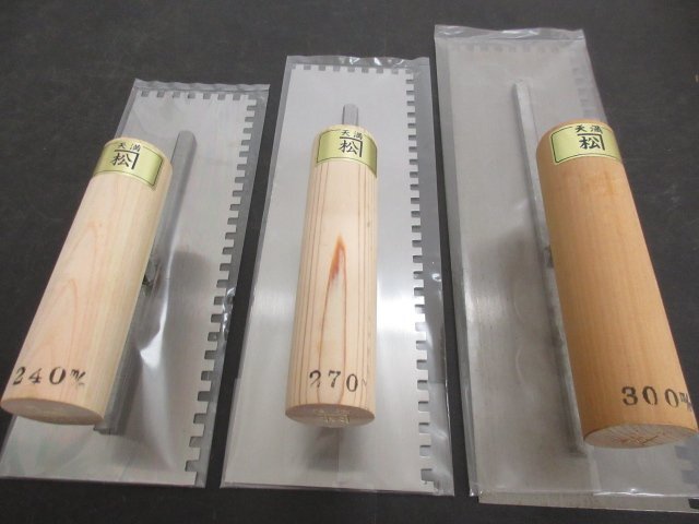 P316■カネ松 / クシ目鏝 5mm目 / 240mm 270mm 300mm // 計3点 // こて 鏝 コテ 左官道具 / まとめ売り / 未使用
