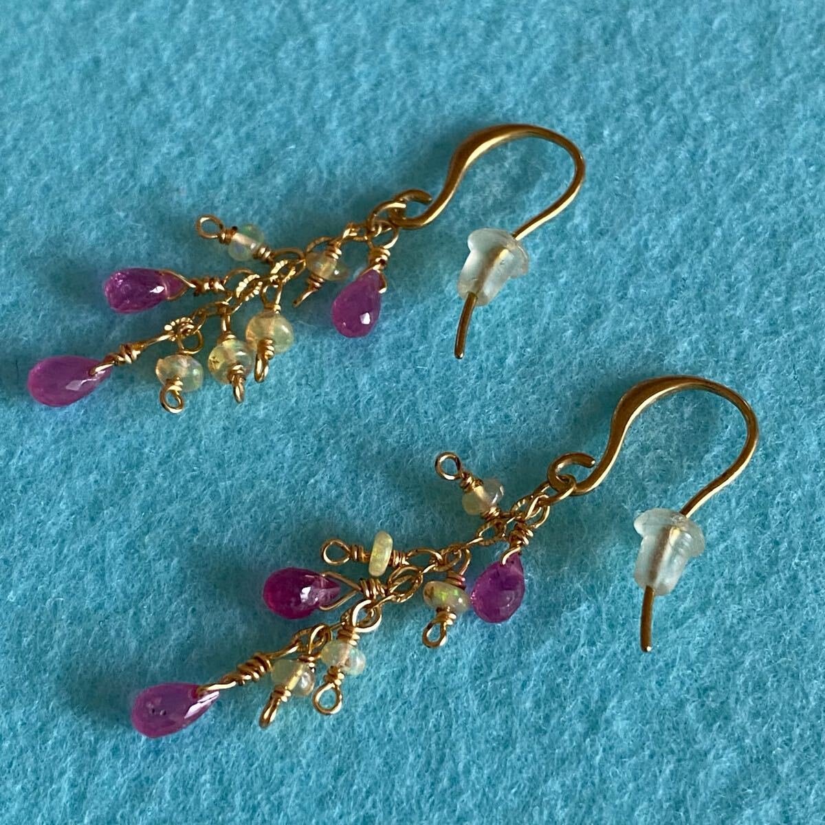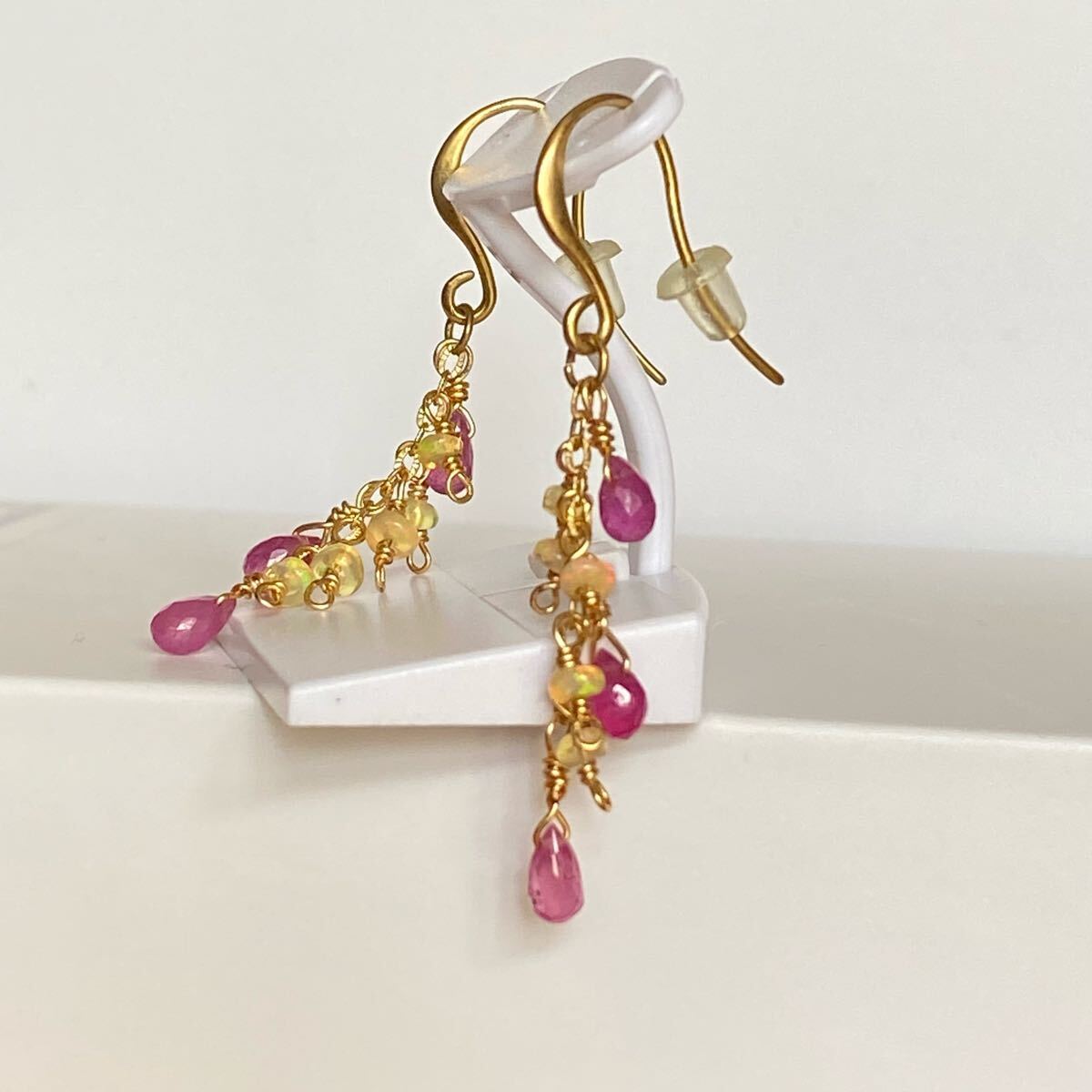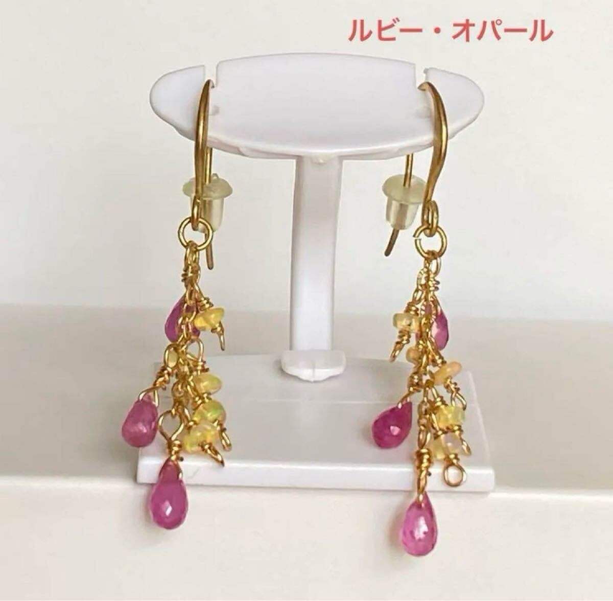 合計8石の天然石が揺れる華やかなピアスです。