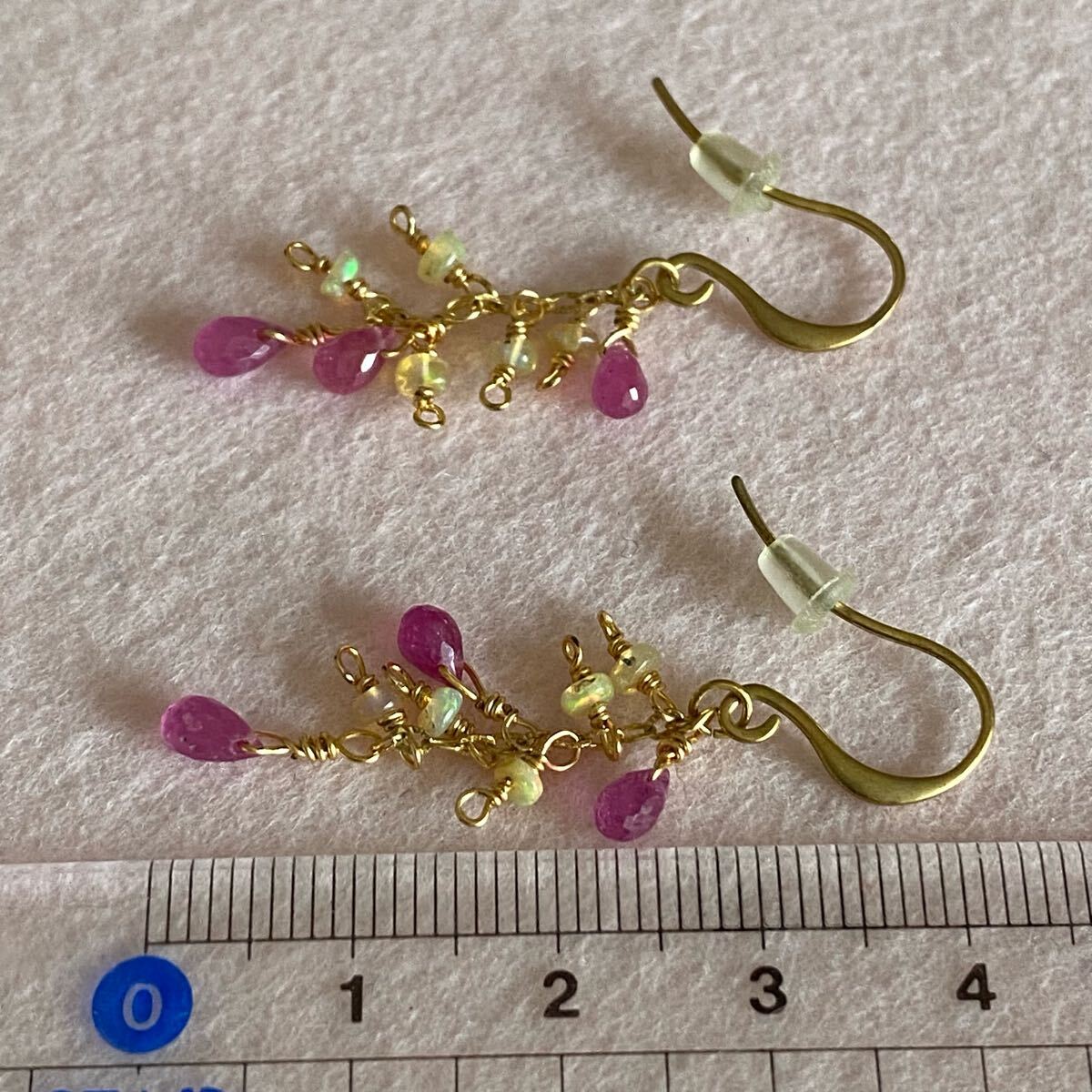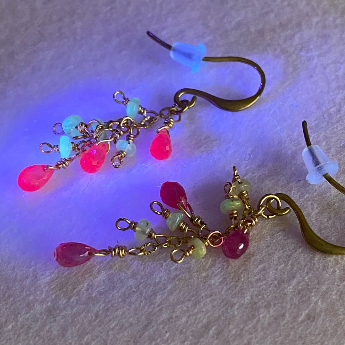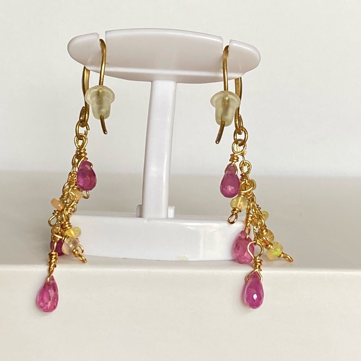 合計8石の天然石が揺れる華やかなピアスです。