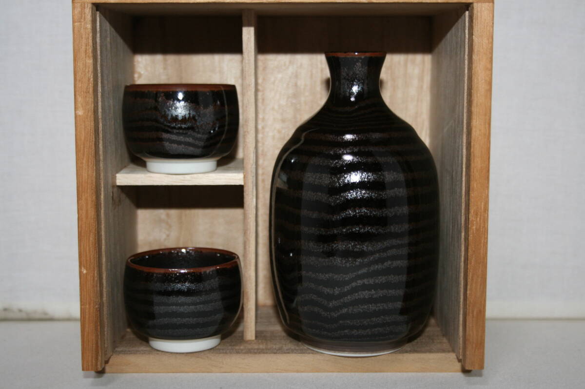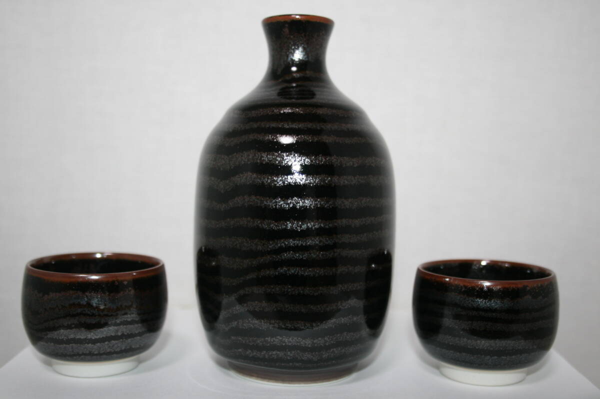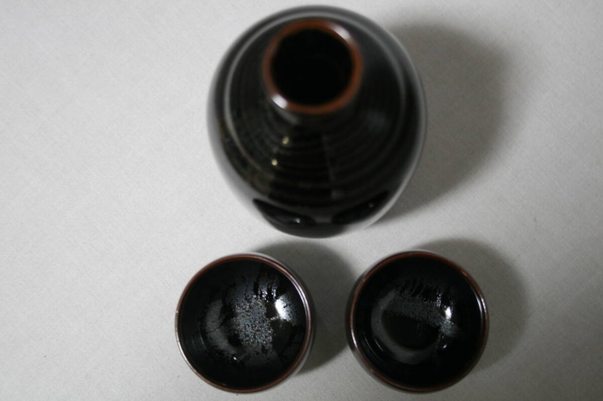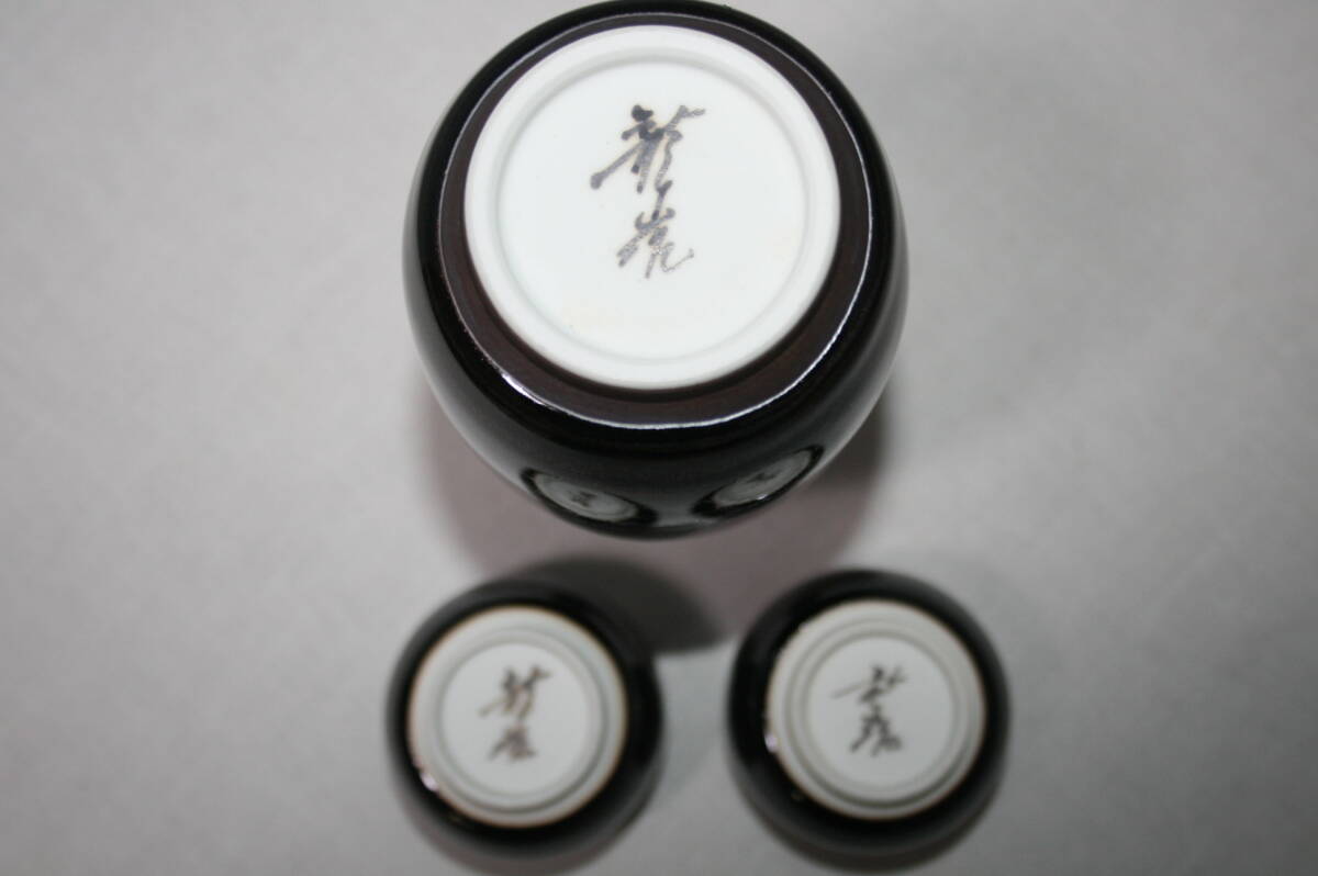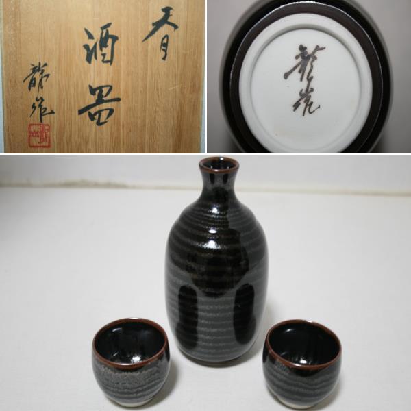 ☆青木龍山本人作/文化勲章受章者/天目/渚/酒器揃/3個組☆