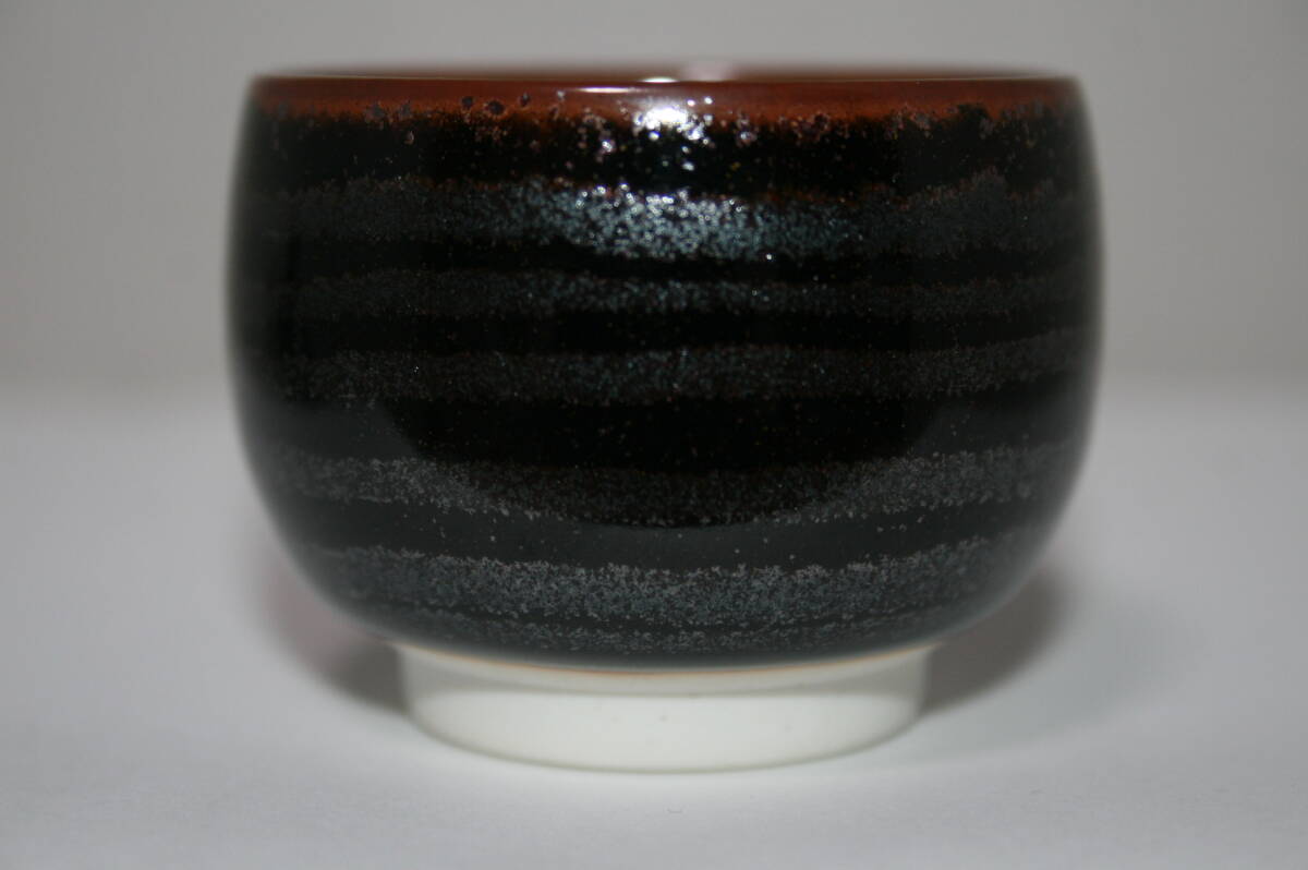 青木龍山本人作/文化勲章受章者の酒器揃です。人気の天目「渚」を描いた落ち着いた雰囲気のお品です。