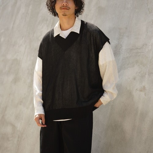 コットンニットのメッシュ素材がロングシーズンに活躍する事間違いなしのベスト。