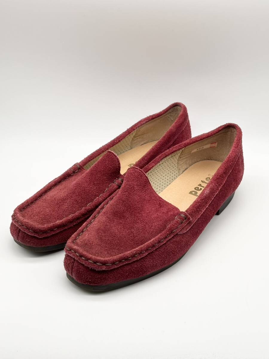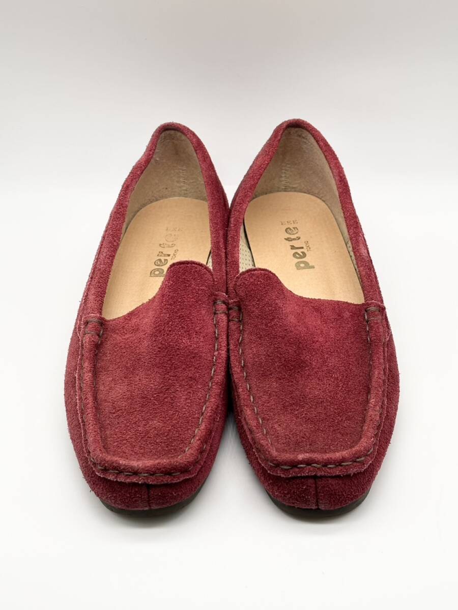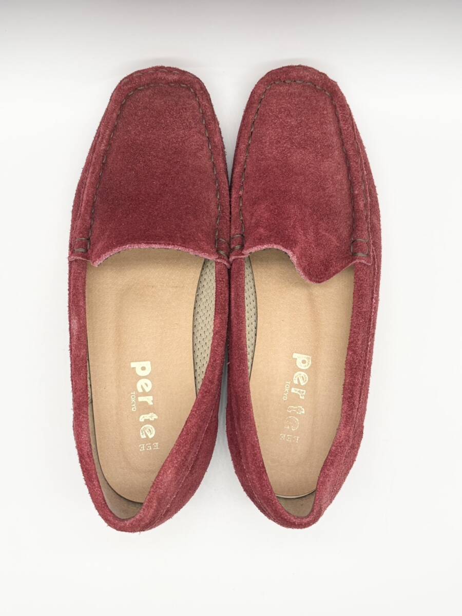 【Perte】ペルテ 本革 モカシン ベロア レッド 赤 23.5㎝ シューズ 靴 くつ SHOES ローファー スリッポン 日本製 ジャパン 現状品