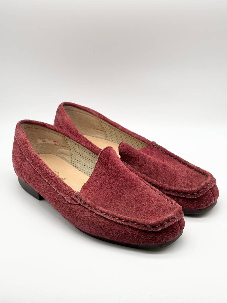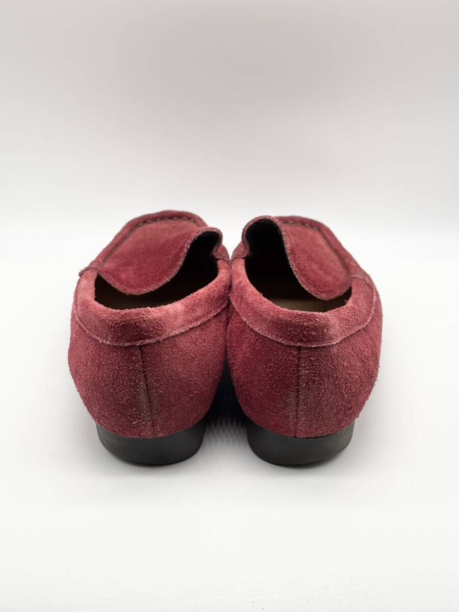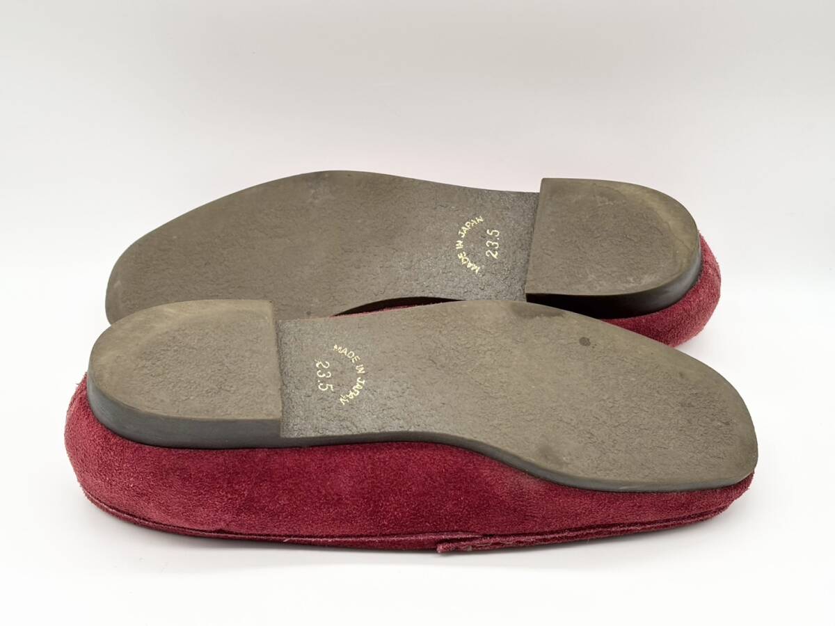 【Perte】ペルテ 本革 モカシン ベロア レッド 赤 23.5㎝ シューズ 靴 くつ SHOES ローファー スリッポン 日本製 ジャパン 現状品