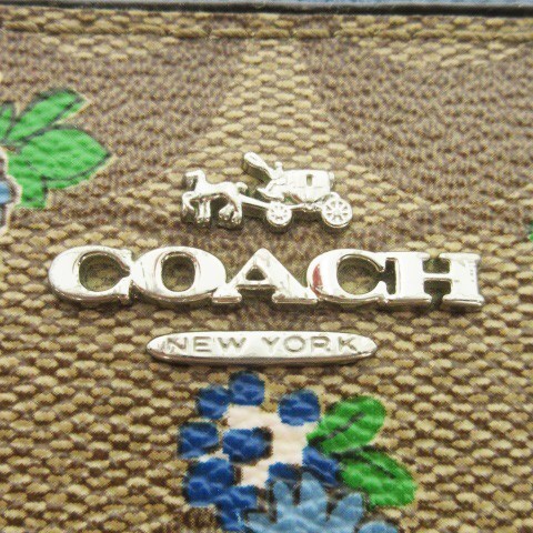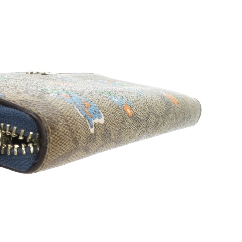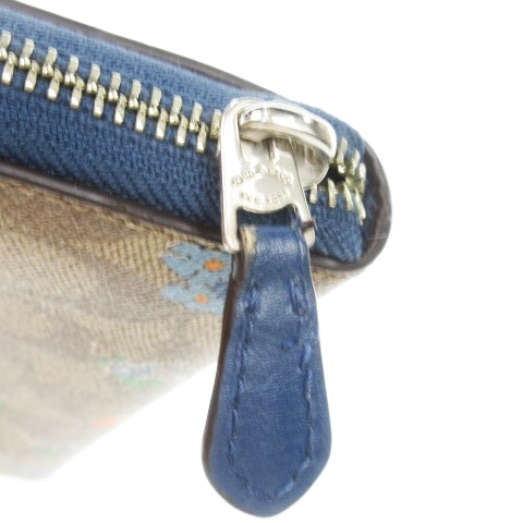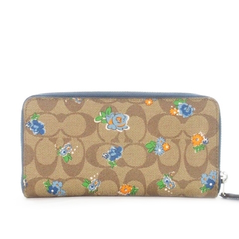 コーチ COACH 長財布 ロングウォレット 小銭入れあり レザー シグネチャー ロゴ 花柄 ラウンドファスナー 茶 ブラウン 青 ブルー /AH15