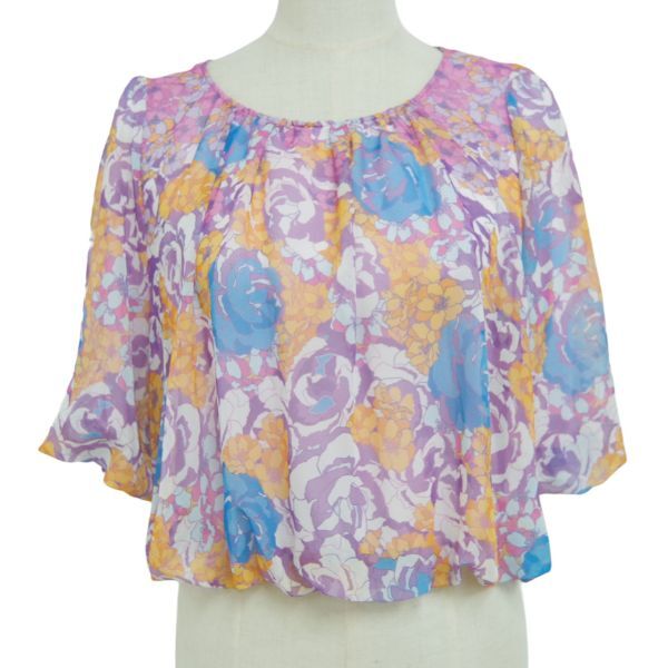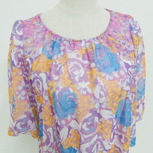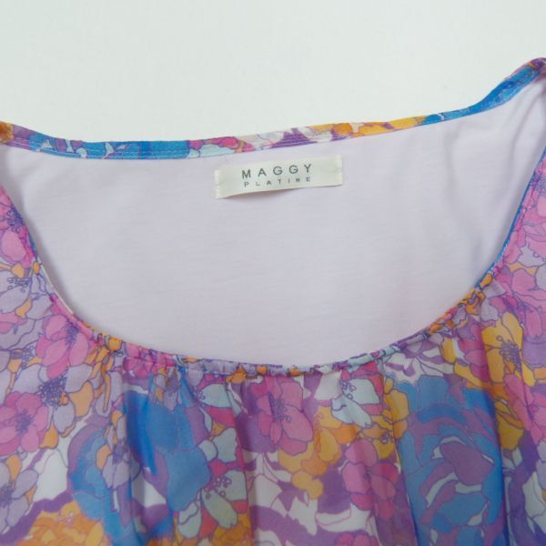 #01【即決】◇MAGGY マギー◇7分袖カットソー トップス 紫ピンク×花柄 サイズ40#880537