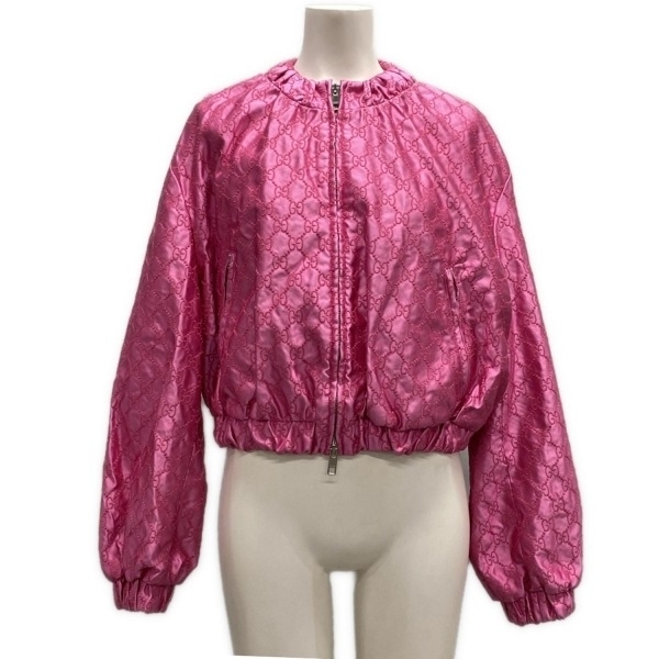 グッチ GUCCI ブルゾン サイズ40 M 691925 - シルク ピンク レディース 長袖/刺繍/GG柄/ジップアップ/秋/冬 美品 ジャケット