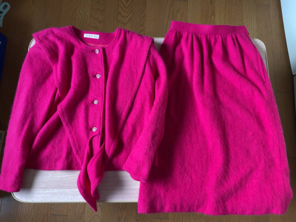 送料無料 希少 YUKI TORII セットアップ アンゴラ混 ジャケット スカート ピンク 日本製 ユキトリイ ユキトリヰ 80年代 90年代 ビンテージ