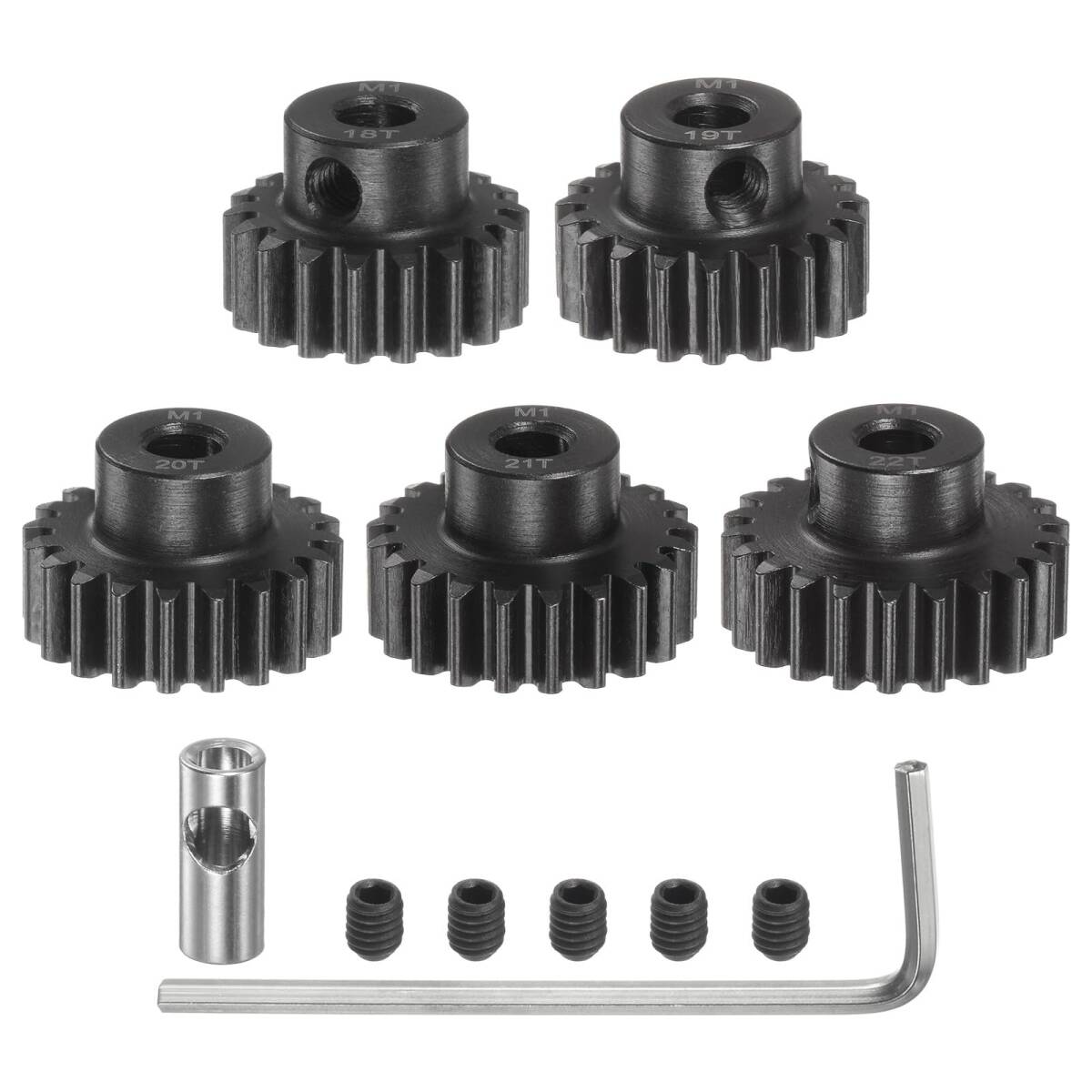 ユニバーサルなMod-1ピニオンギアで、5mmのRCモーターシャフトに適合します。5mmから3.175mmのシャフトカプラーが付属し、RCカーやトラックなどに使用できます。18T 19T 20T 21T 22Tのピニオンギア、グラブスクリュー5個、3.175mm(1/8 ")のシャフトカプラー、六角レンチが5個ずつ含まれています。炭素鋼製で、ピニオンギアはより高い硬度、強度、変形耐性を持っています。表面硬化処理により、耐摩耗性、強度の向上、切り欠き感度の低下があり、耐久性があり再利用可能です。デバイスのピニオンギアの交換に最適です。注意: ピニオンギアは歯面が柔らかく、過度な力に耐えられませんのでご注意ください。