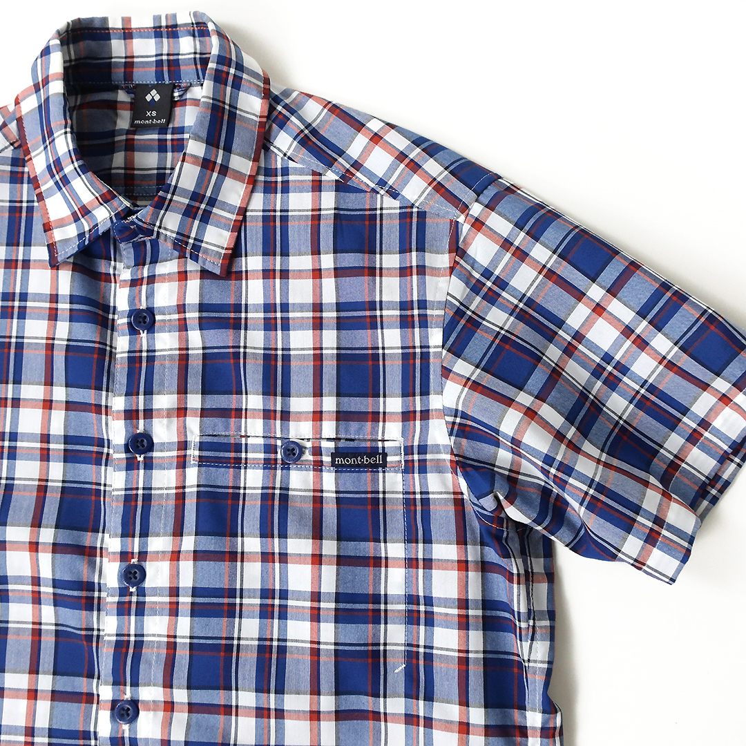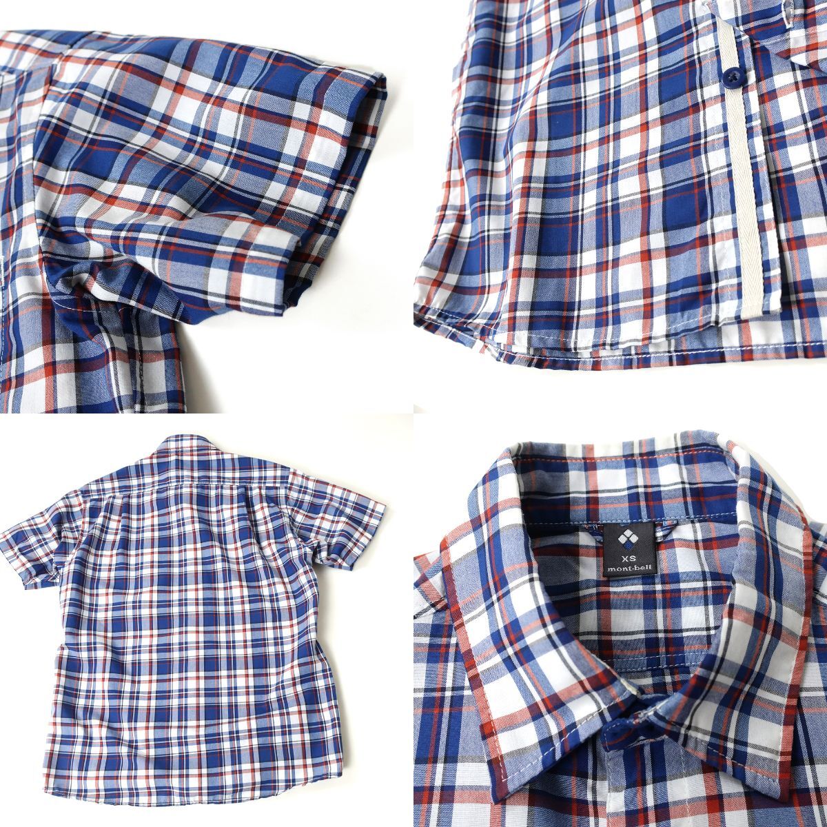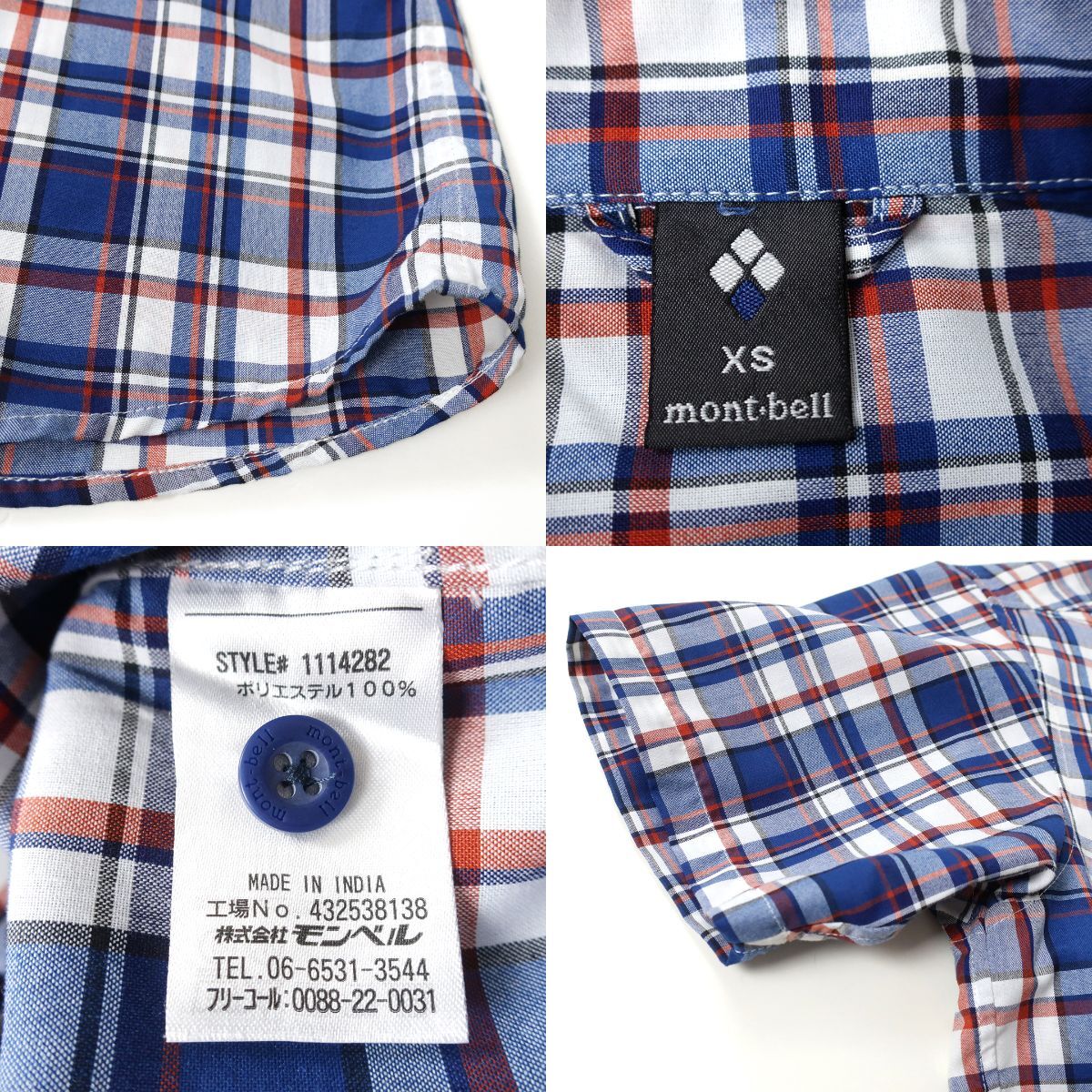 美品 mont bell モンベル 速乾ドライオックスフォード生地 シャツ タータンチェック ブルー (XS)