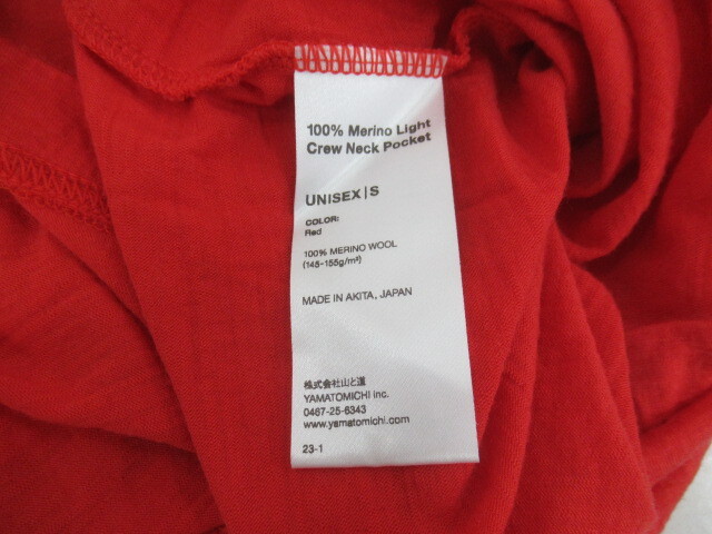 【状態詳細】ワイドフィットで薄手のポケット付きメリノTシャツ。23年製