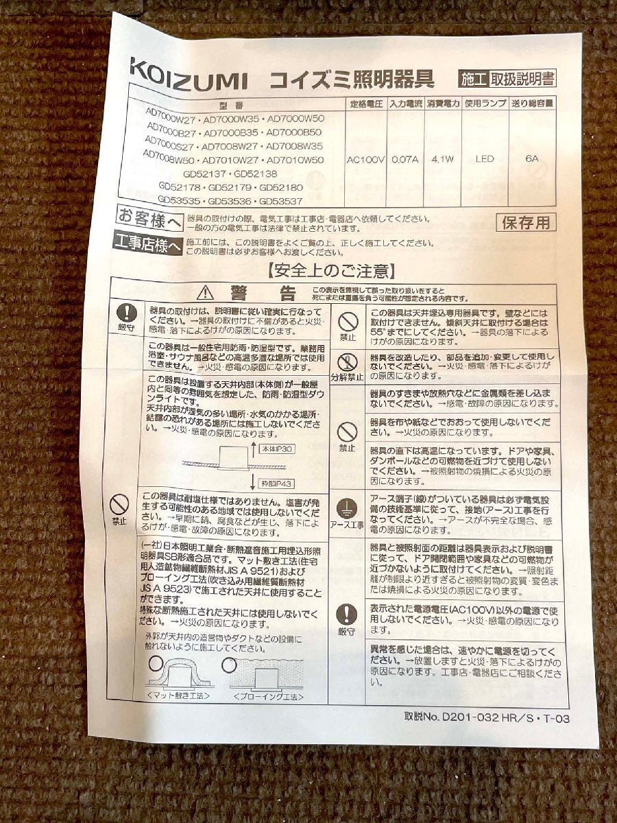 【福岡】ダウンライト LED照明器具 10個セット◆KOIZUMI◆AD7000W50◆φ110◆長期保管品◆BR9716_Ts