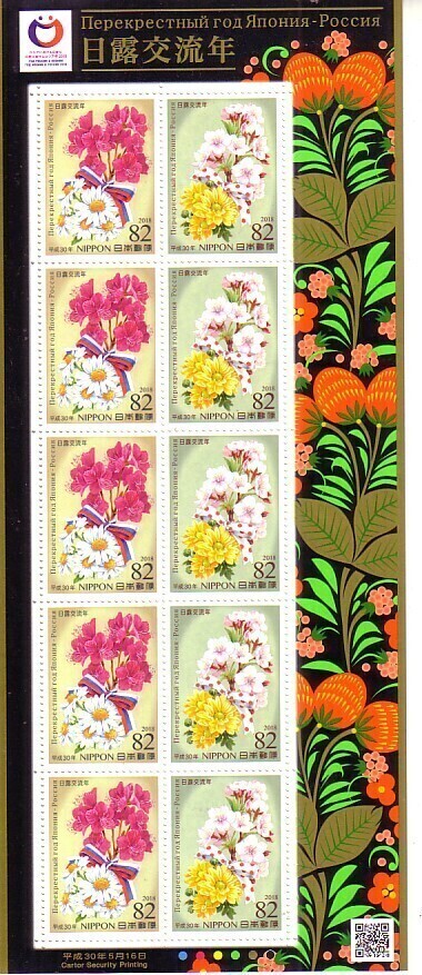 「日露交流年」の記念切手です(82円切手X10枚)。送料は普通便110円(郵送 複数落札でも同一料金)になります。