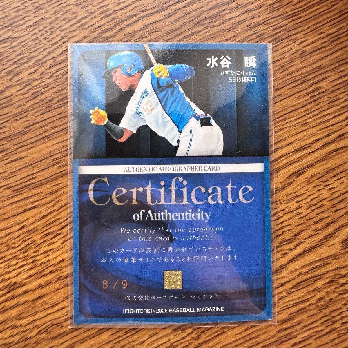 BBM 2025 北海道日本ハムファイターズ 水谷瞬 直筆サインカード 9枚限定 銀版 シルバー版