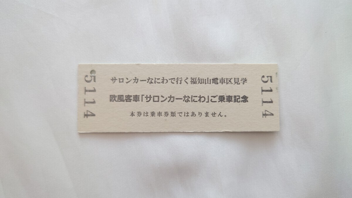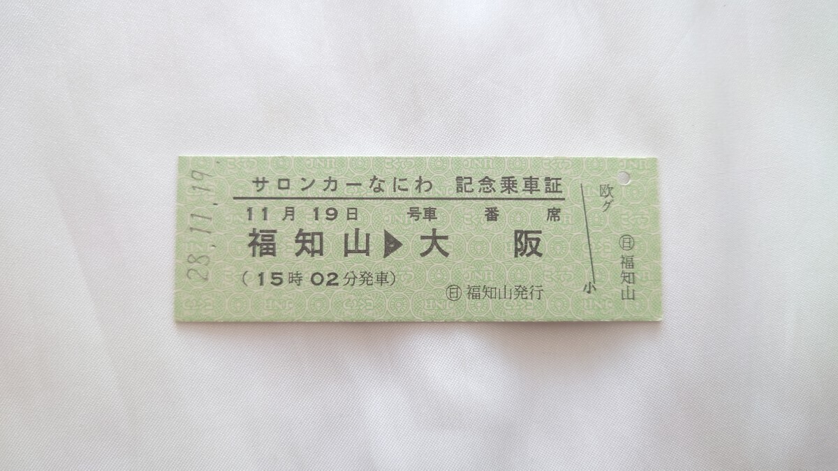 ▽JR西日本▽福知山→大阪 サロンカーなにわ記念乗車証▽D型硬券平成28年