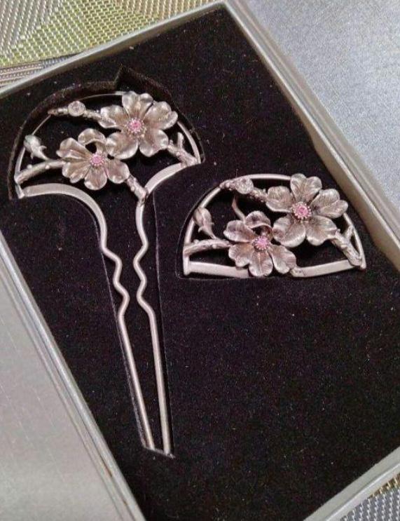 かんざし+帯留めセット★美しい桜の細工 ★アンティーク スワロ 簪 帯締め カンザシ着物浴衣に