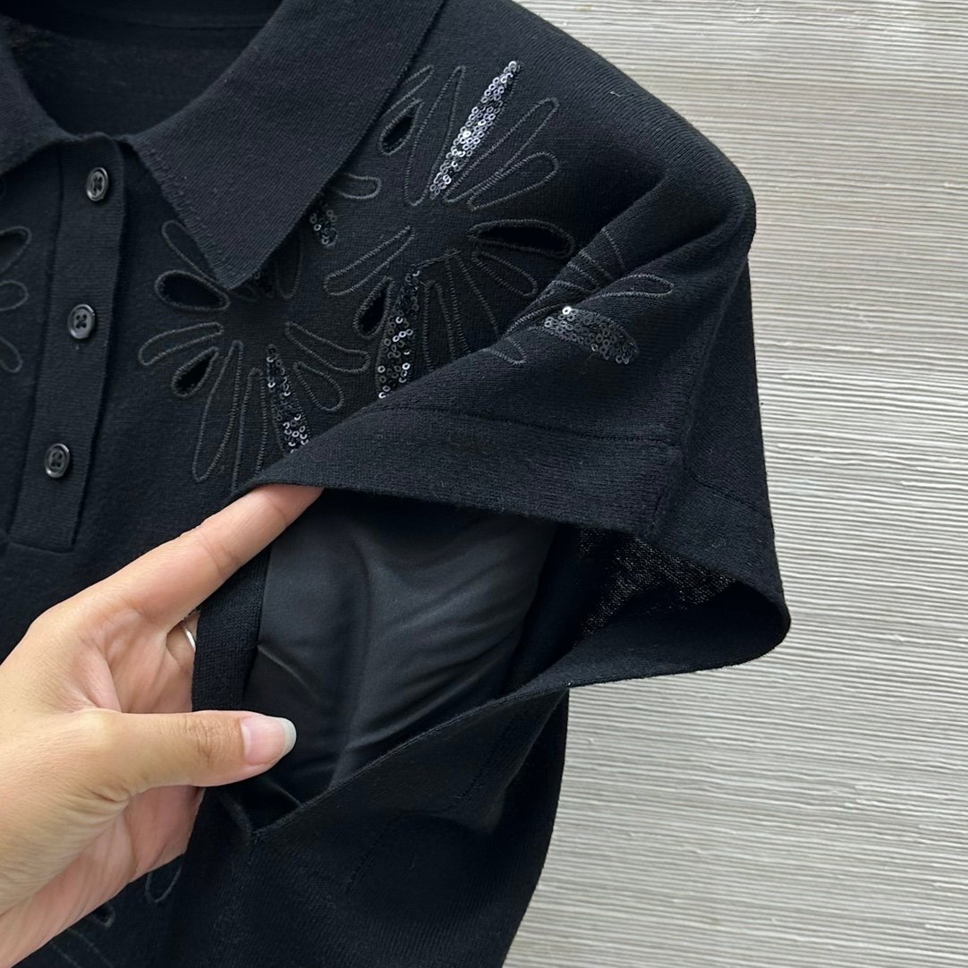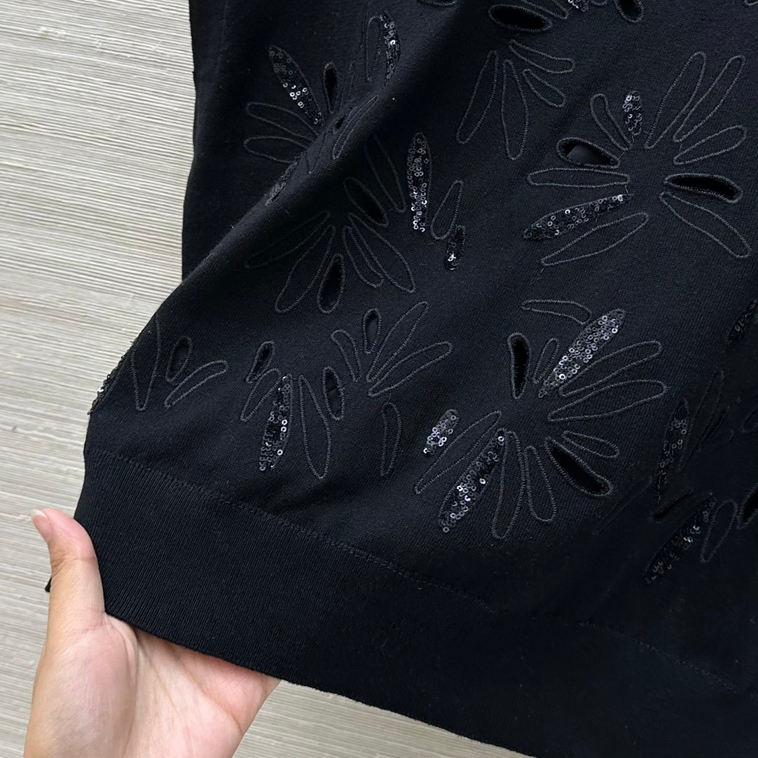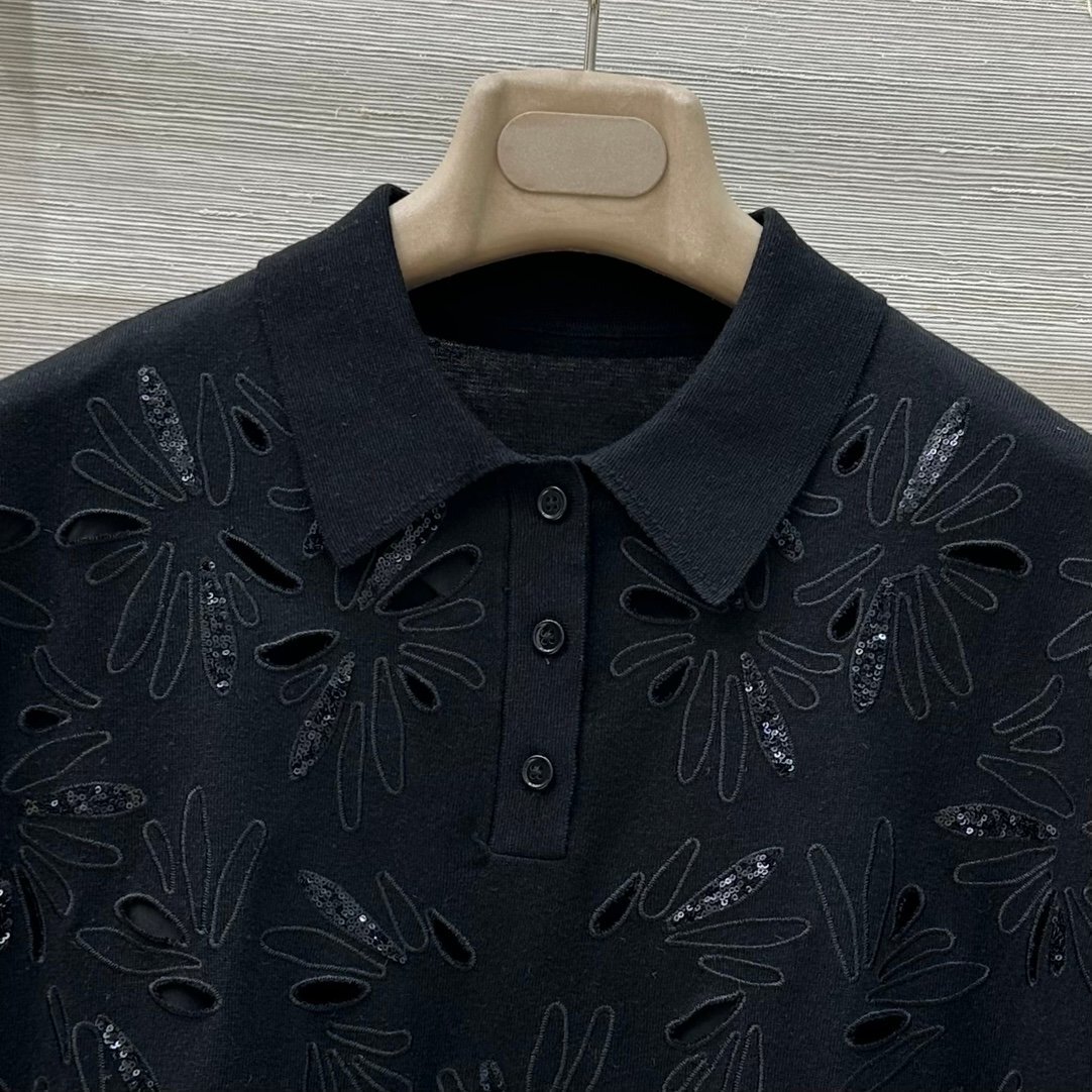 Brunello cucinelli ブルネロクチネリ レディース スパンコール刺繍 透け編みニット ポロシャツ ノースリーブ S- Lサイズ ブラック