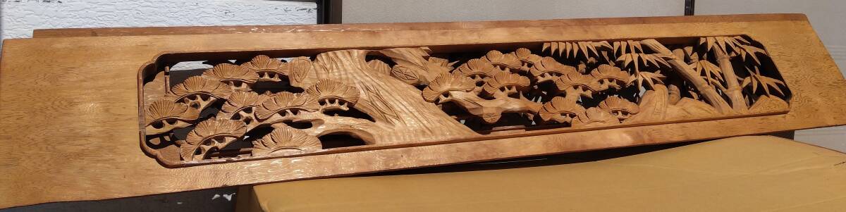 透かし彫り欄間(額無) 松竹梅一対 1820×300  かけ部あり