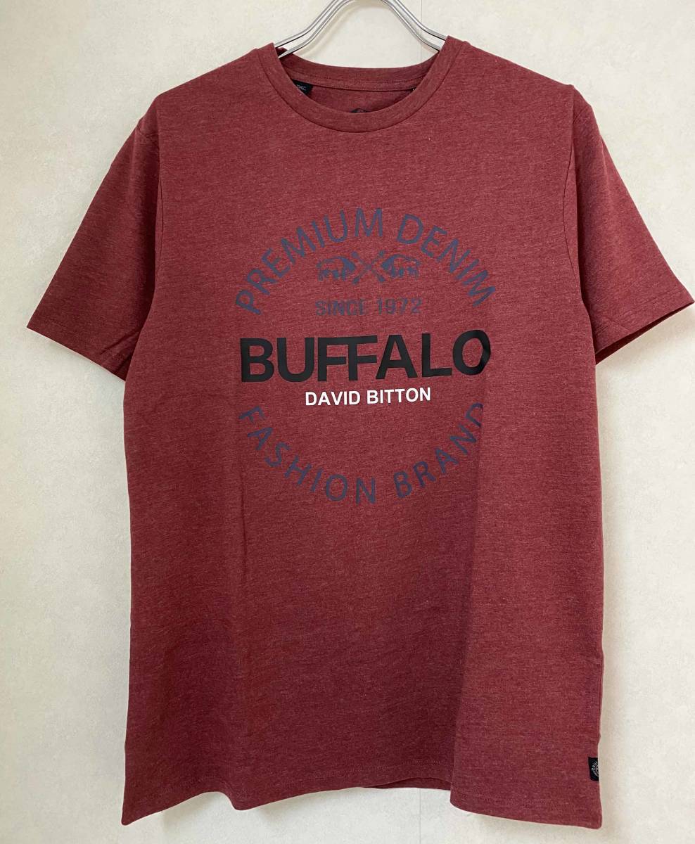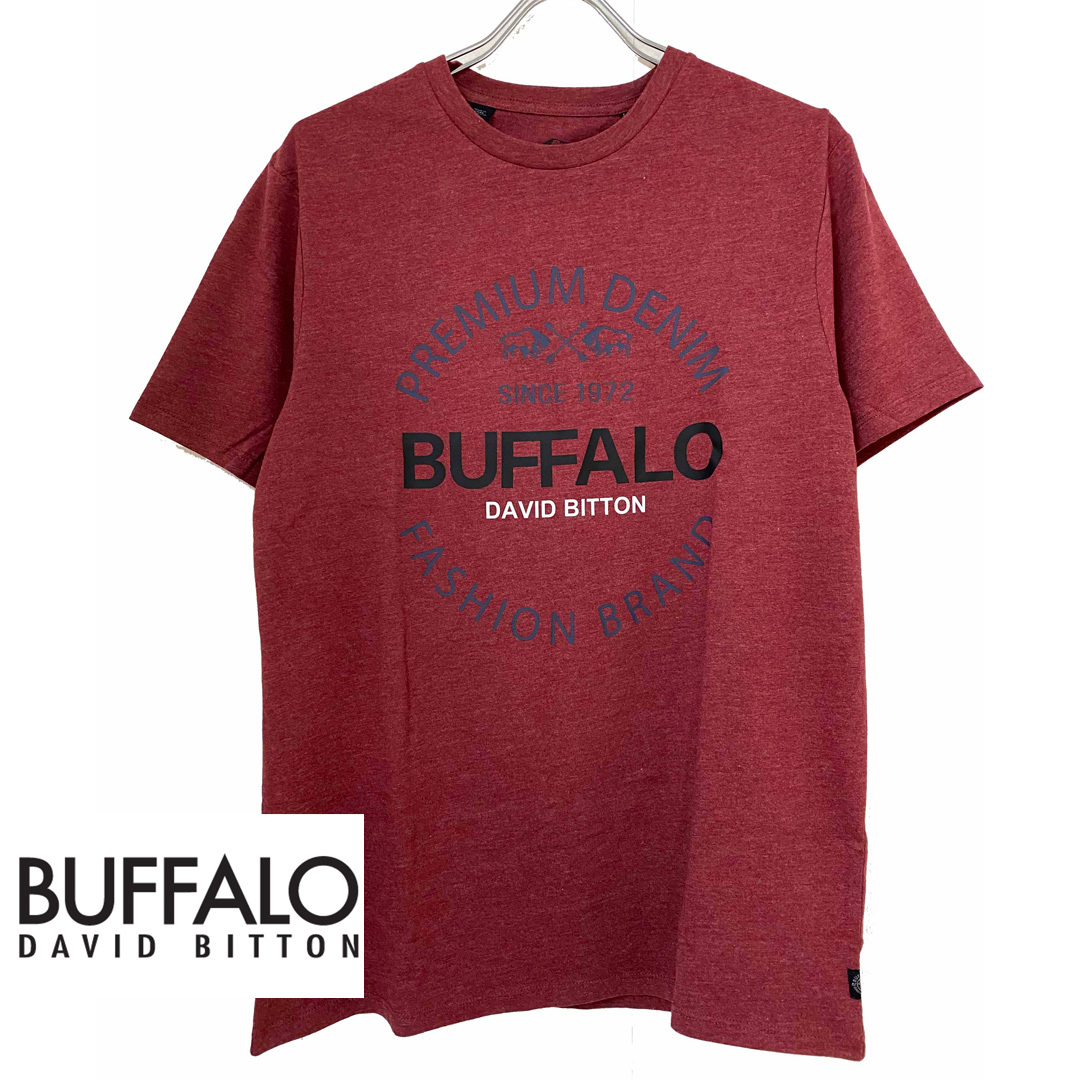 新品 S ★ コストコ BUFFALO メンズ 半袖 Tシャツ ロゴ ヘザー レッド ユニセックス トップス バッファロー MENS SS TEE DAVID BITTON