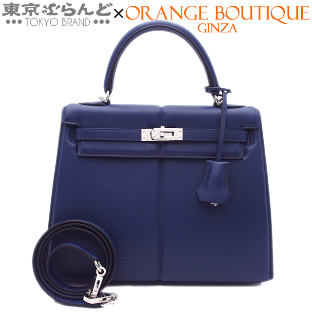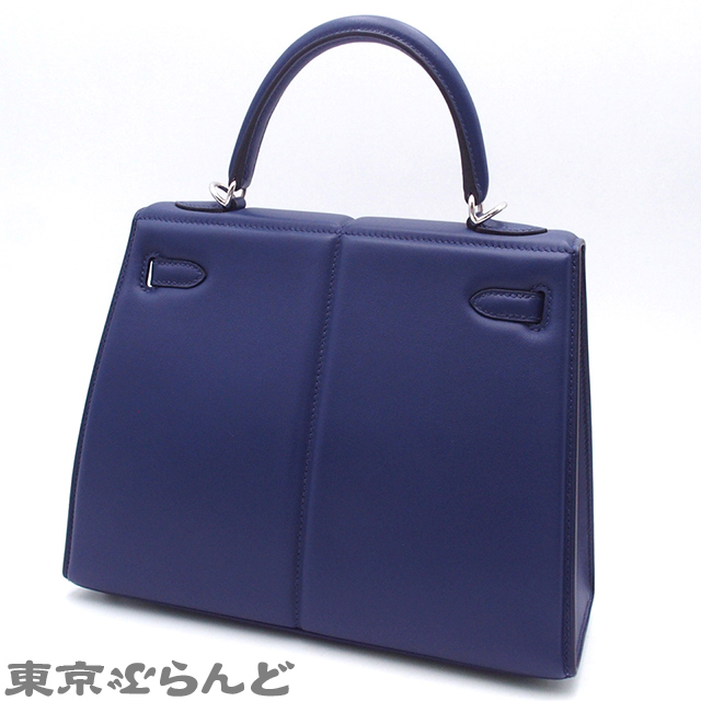 802145855 エルメス HERMES ケリーパデッド 25 外縫 2WAY ハンドバッグ Z刻印 ブルーサフィール SV金具 スイフト 2021年 ショルダーバッグ
