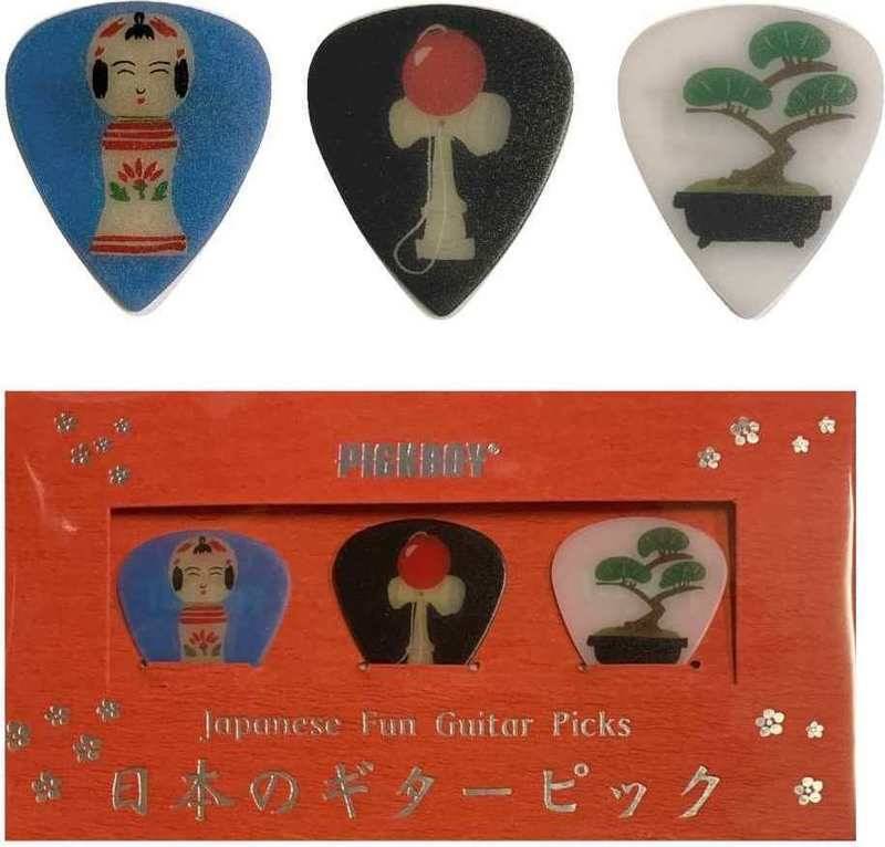 • 日本の伝統的な絵柄をプリントした日本製ギターピック3枚セット。外国からのお客様へのギフトやお土産にも最適です。