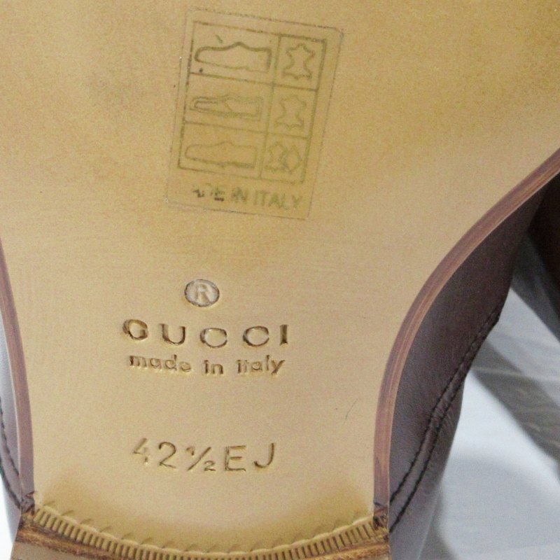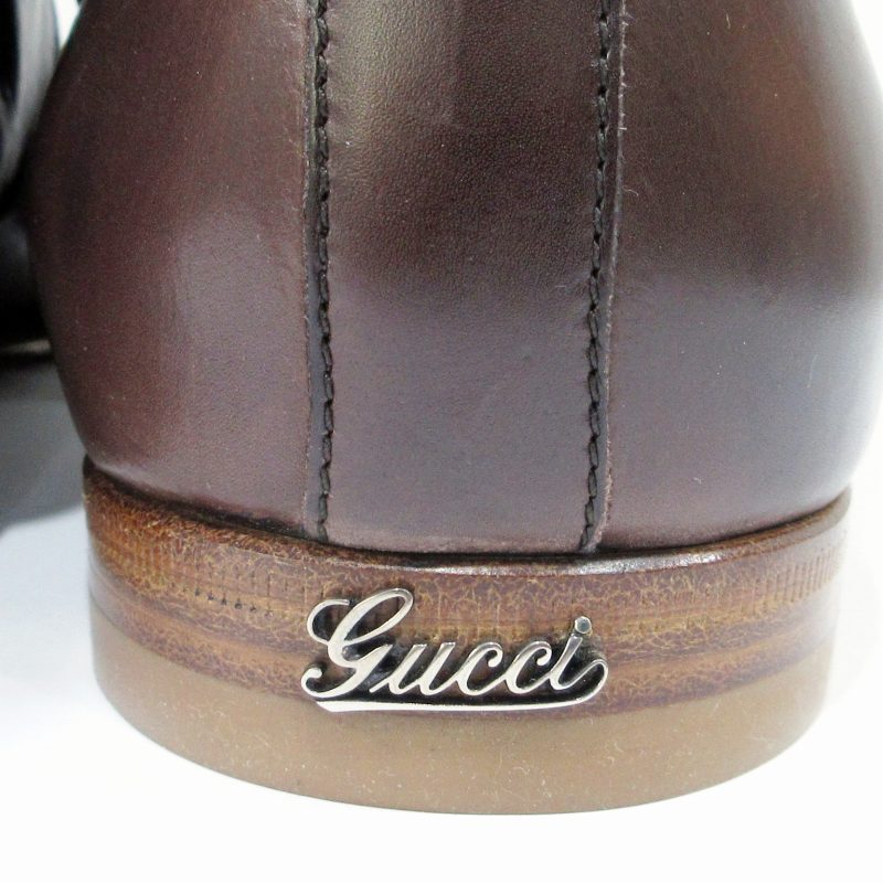 未使用品 グッチ GUCCI ミドルカットブーツ ヒールロゴ レザー 216143 42 1/2 EJ 約27.5cm 茶 ブラウン 系 0621 メンズ