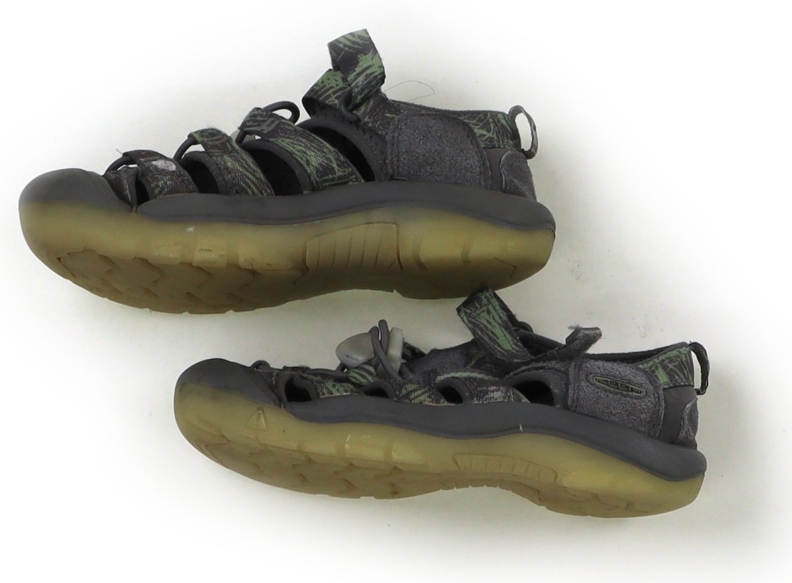 サイズタグが切り取られています。ソール外寸約20cmなので18cm前後のお子様向けと思われます。若干黒ずみ汚れがありますがソールもしっかりとしていてまだお使いいただけそうです。